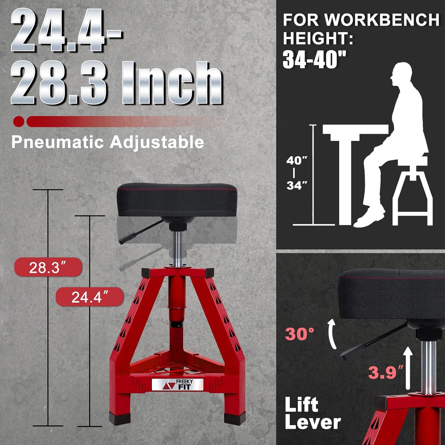 - 【Not Too High or Too Low. ADJUSTABLE HEIGHT】24.4-28.3 inch. This adjustable stool is equipped with a pneumatic adjustable mechanism, allowing easily adjust the height from 24.4 to 28.3 inch. This height adjustment allows you to be at a height that is neither too high nor too low, allowing you to work easily and comfortably.