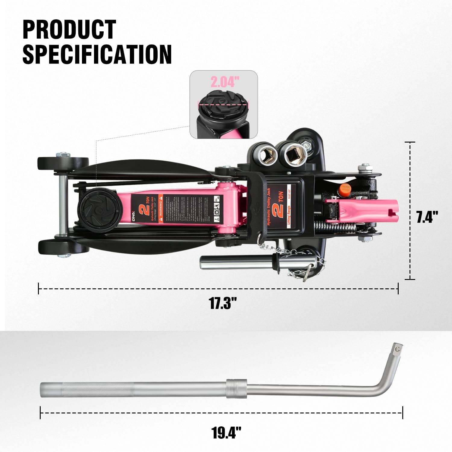 DNA MOTORING Floor Jack with Socket and Lock, Low Profile Hydraulic Trolley Jack for Cars Lift, 2 Ton (4000 lbs) Capacity, Lifting Range 5.12"-13", Pink, TOOLS-00677-PK