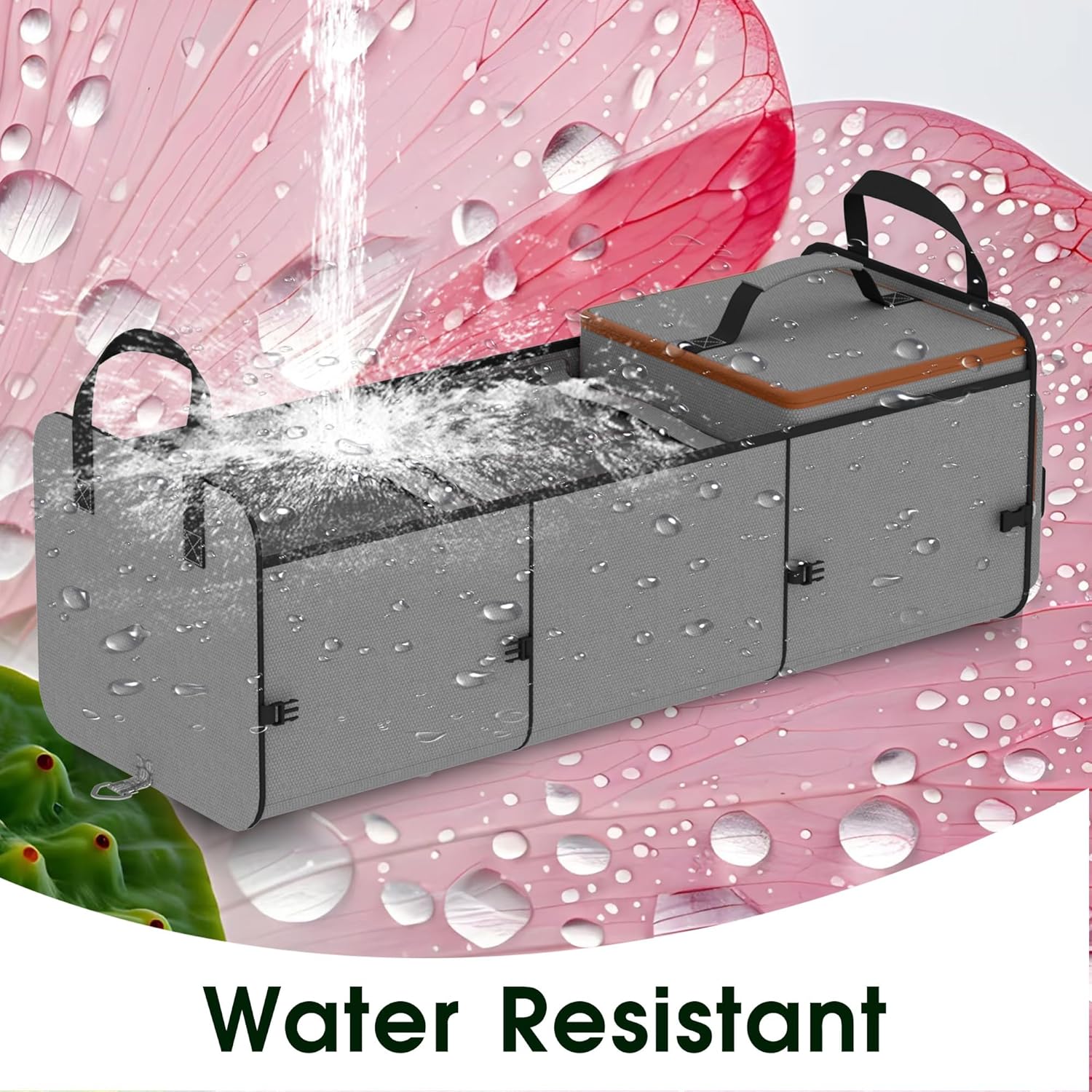 - Fine Fabric : M ade of high-quality 600D PU coated fabric, it has strong hydrophobicity and is a super water-resistant fabric. This feature can effectively protect your belongings from moisture and water damage. No matter what the weather is like, your items in the trunk organizer will stay dry and safe