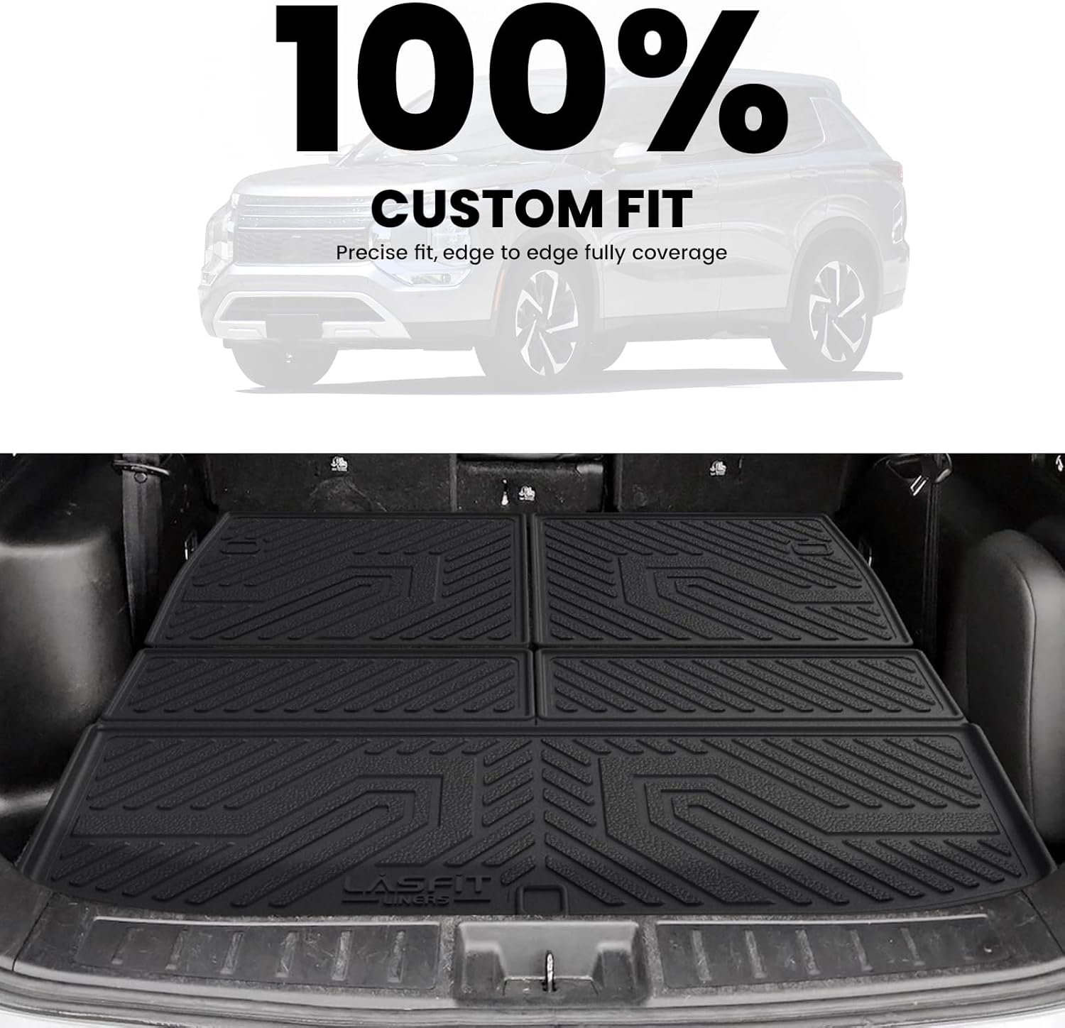 - CUSTOM FIT - This LASFIT Backrest & Cargo Mat is specifically designed for Mitsubishi Outlander 2022-2025 models. The precise cut ensures no gaps or shifting, providing a seamless and secure fit. No need to worry about compatibility issues or misfits—install it effortlessly and enjoy the perfect coverage for your trunk space.