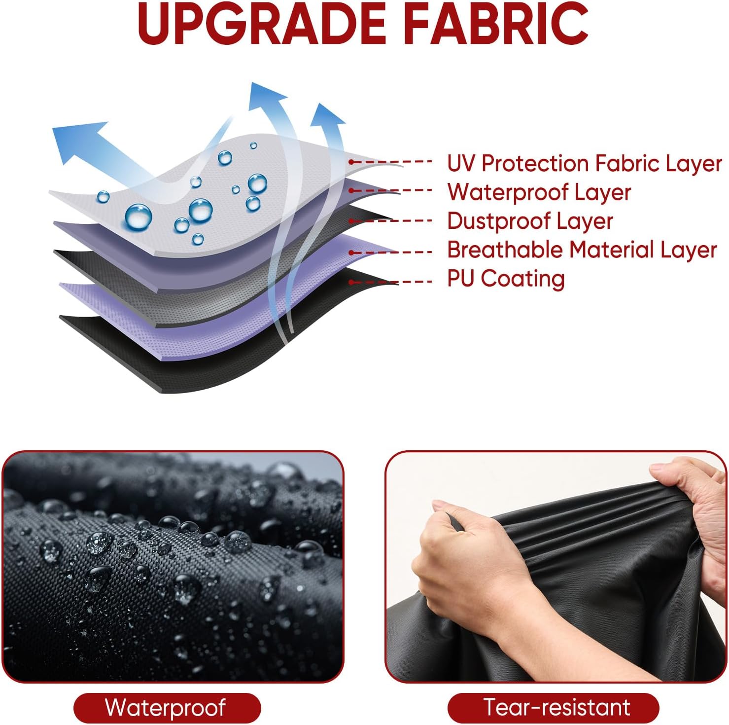 - Durable Waterproof ATV Cover: Heavy-Duty Oxford fabric with double-stitched seams keeps your ATV completely dry and protected from rain, snow, and UV damage. Engineered to resist cracking in cold weather and reflect heat in summer, it's the ultimate 4 wheeler cover shield for year-round outdoor use