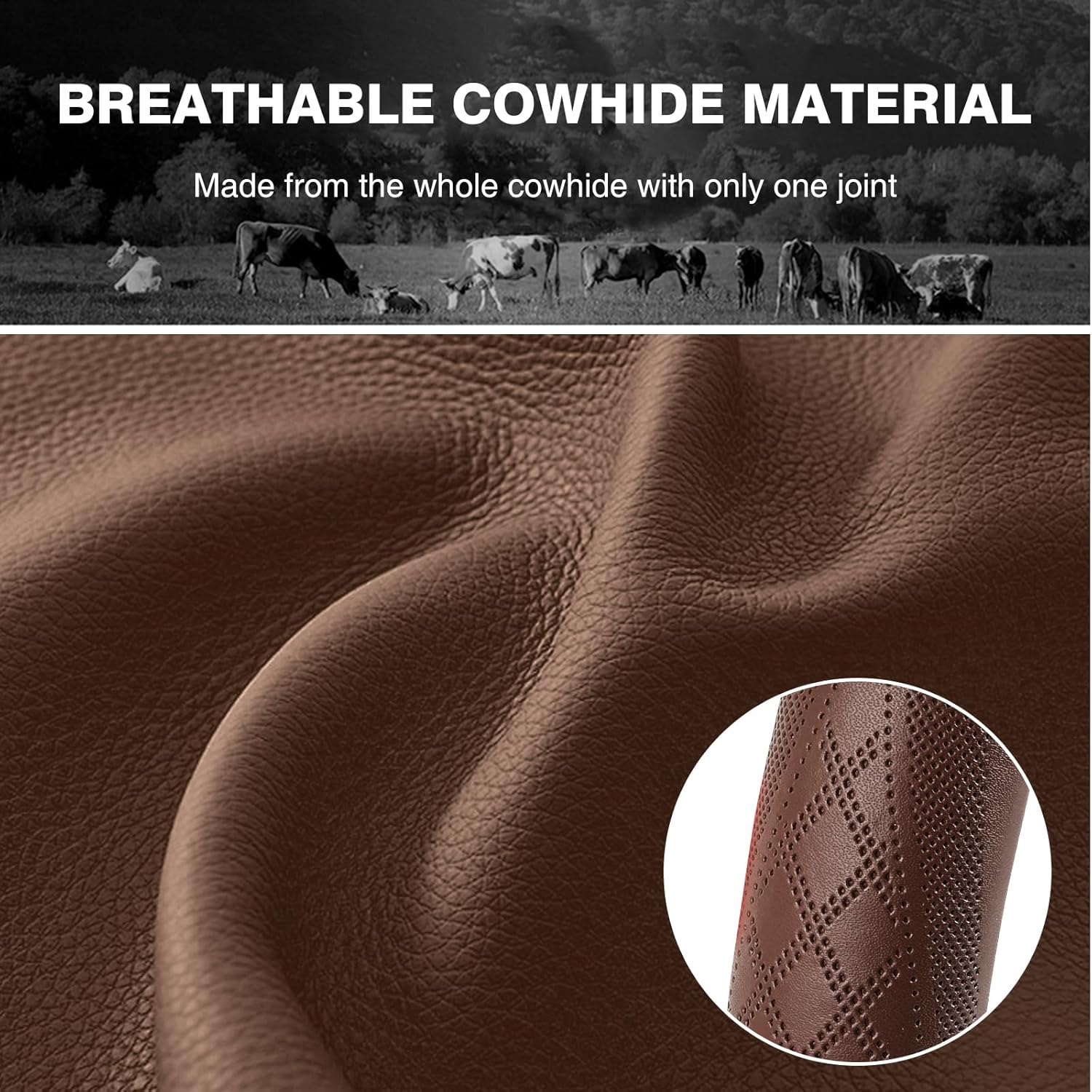- 【Suitable Size】: Enhance the appearance and feel of your car's interior with our luxurious cowhide steering wheel cover. This steering wheel cover is designed to universally fit wheels ranging from 14.5 to 15 inches. Please measure the size of the steering wheel before purchasing.