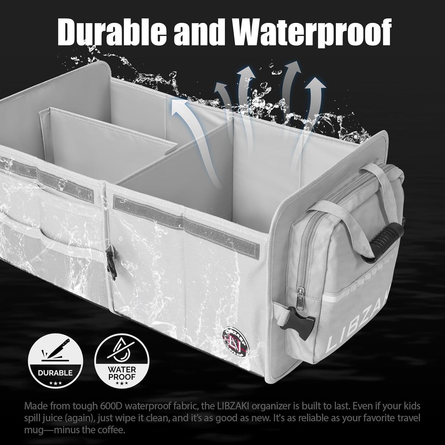 - Rugged Car Storage Organizer Built to Last Engineered for heavy-duty use! Both sizes feature ​600D tear-resistant Oxford fabric + reinforced base, making this ​trunk organizer for car waterproof and crush-proof. Safely holds ​66 lbs of cargo without sagging – from car accessories to emergency kits.