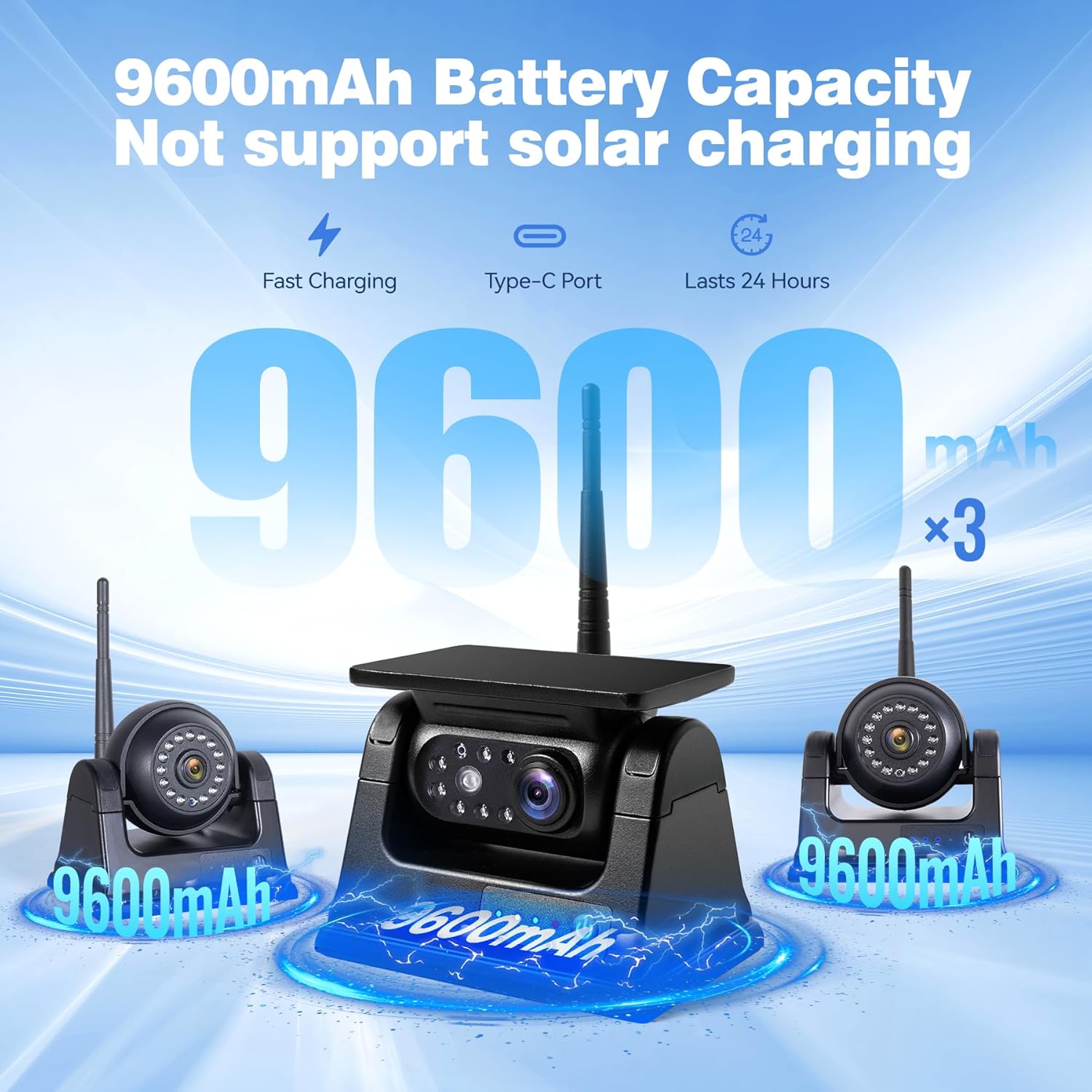 - 【3 Portable Wireless Magnetic Cameras】 This innovative battery-powered wireless camera system combines a built-in 9600mAh high-capacity rechargeable battery with a compact, lightweight design for optimal portability. The package includes three 5V wall chargers with Type-C charging cables, ensuring convenient power replenishment whenever required. The magnetic mounting system provides effortless installation and reliable performance.