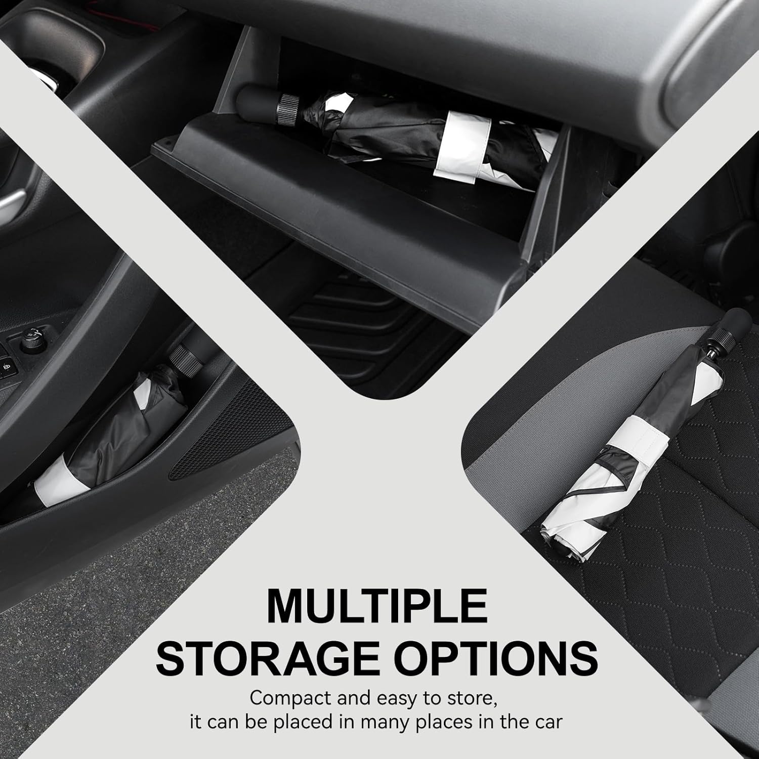 - DURABILITY: Built with 10 robust umbrella ribs, this front windshield umbrella sunshade is extremely sturdy. The bendable tubes can be flexed 360Β°, and the silicone tips protect your car's interior from scratches and damage, ensuring long-lasting use and peace of mind.