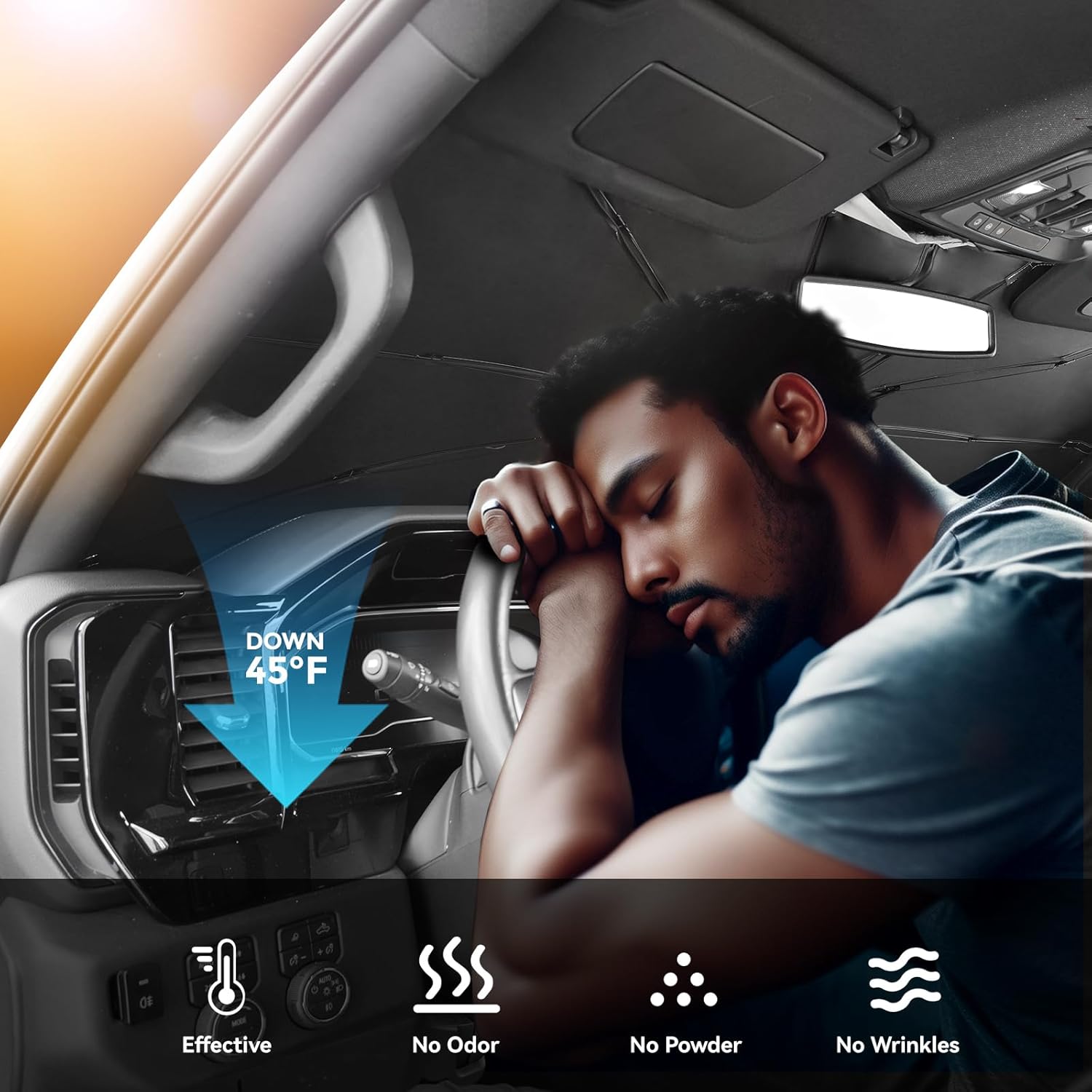 - PROTECTION: Beat the midday heat and glare! Engineered for maximum protection, this windshield sunshade blocks strong sunlight and UV rays, safeguarding your car's interior and keeping you protected. Step into a cooler, shaded car every time, enjoy every comfortable journey.