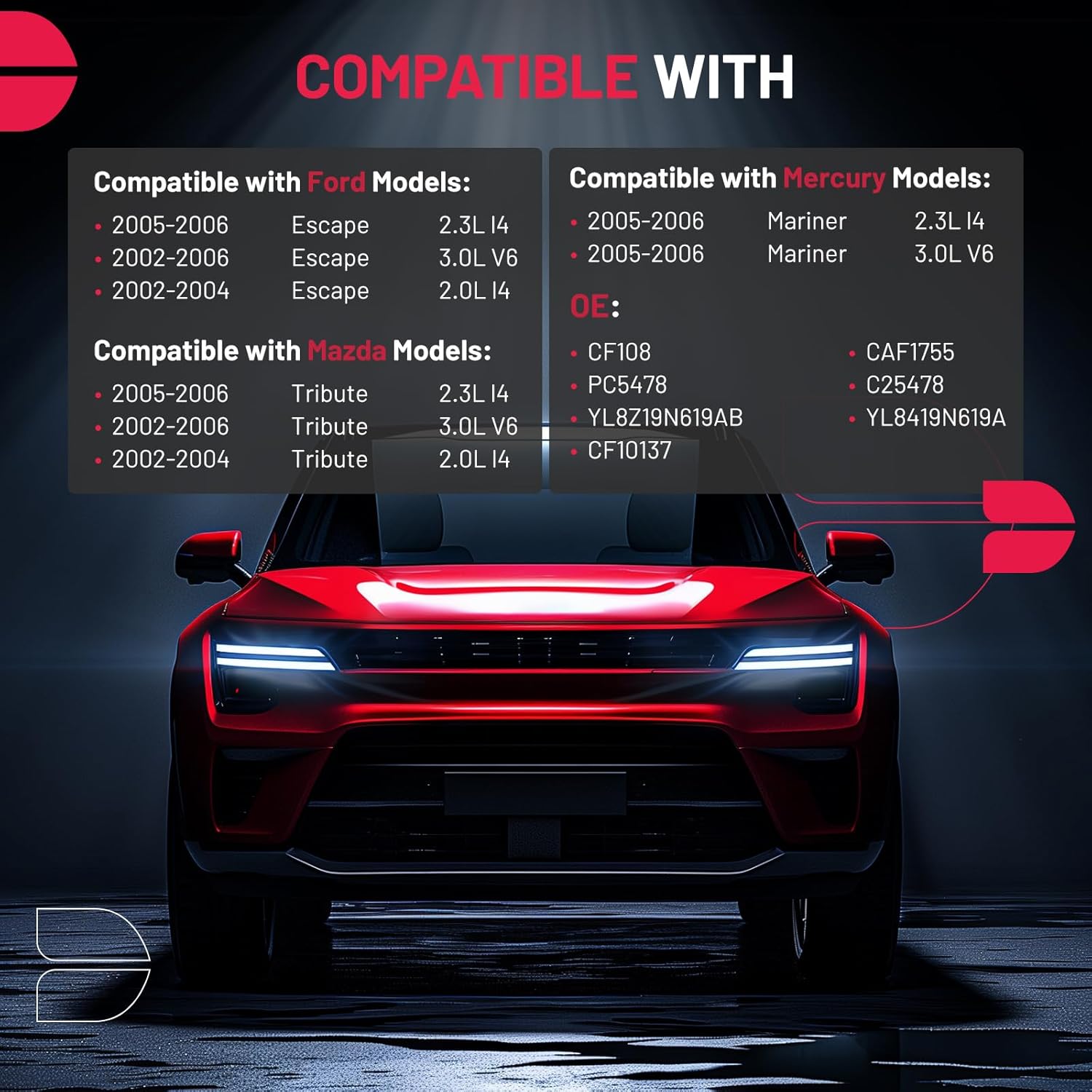- [Vehicle Fitment] Compatible with Ford Models: 2002-2004 Escape 2.0L l4, 2005-2006 Escape 2.3L l4, 2002-2006 Escape 3.0L V6; Compatible with Mazda Models: 2005-2006 Tribute 2.3L l4, 2002-2006 Tribute 3.0L V6, 2002-2004 Tribute 2.0L l4; Compatible with Mercury Models: 2005-2006 Mariner 2.3L l4/ 3.0L V6