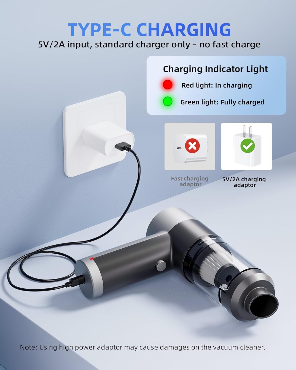 - TYPE-C CHARGING: Comes with a Type-C charging cable, but no charging adapter is included. Use a 5V/2A charger for safe and effective charging. Avoid using fast charging adapters. A built-in indicator light lets you know when it’s charging. Red means it's still charging, and green means it's fully charged