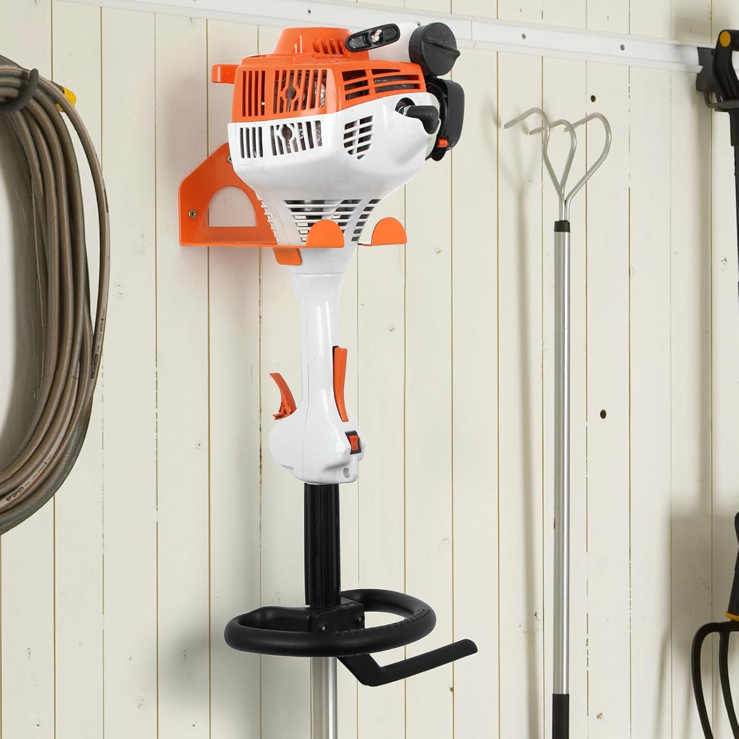 - Space-Saving: Designed for vertical storage, this weedeater hanger wall mount string trimmer hanger can greatly reduce the floor space occupied, Ideal for garages, workshops, and outdoor sheds, it maximizes storage efficiency