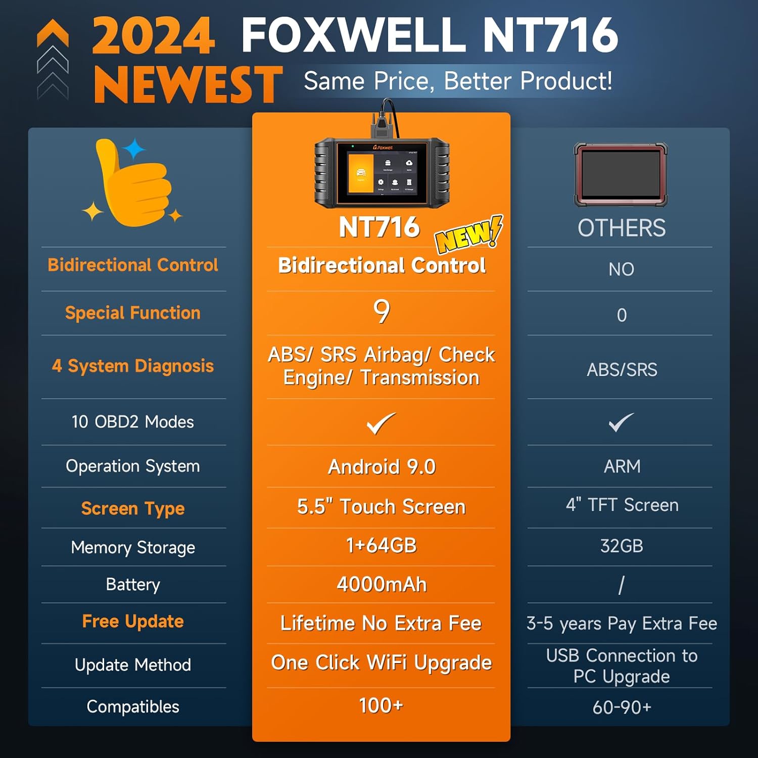 - 1-Year Warranty & Lifetime Online Support - Includes a 1-year warranty and lifetime online technical support—we're here whenever you need assistance. The FOXWELL NT716 comes with a compact, waterproof, and shockproof carrying case for long-lasting protection. Buy with confidence and use with peace of mind. All these features at an affordable price, delivering a smooth, reliable, and user-friendly experience every time.