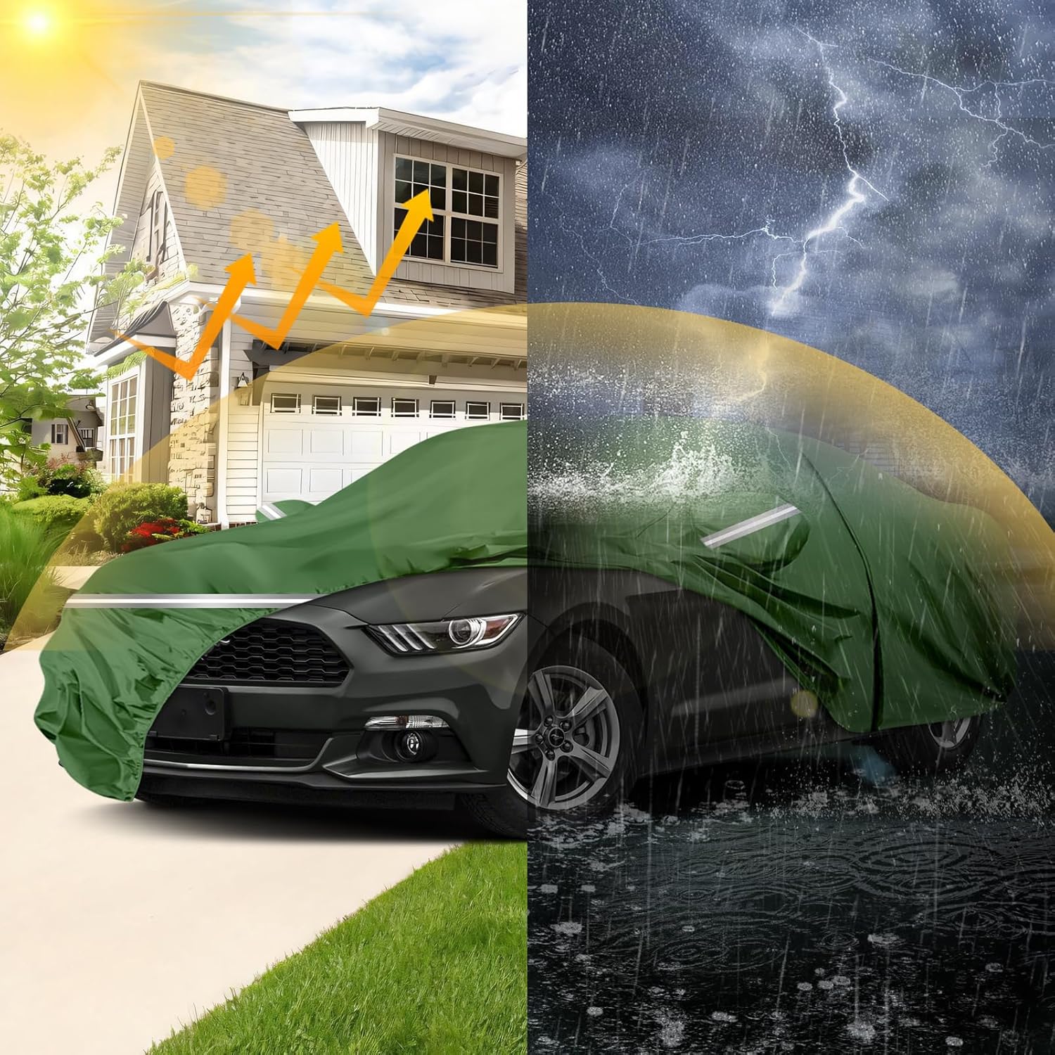 BOSSTONE Car Cover Custom Fit for Ford Mustang 1994-2025, Waterproof All Weather for Automobiles Full Exterior Cover Rain Sun Snow Protector with Door Zipper (Green)