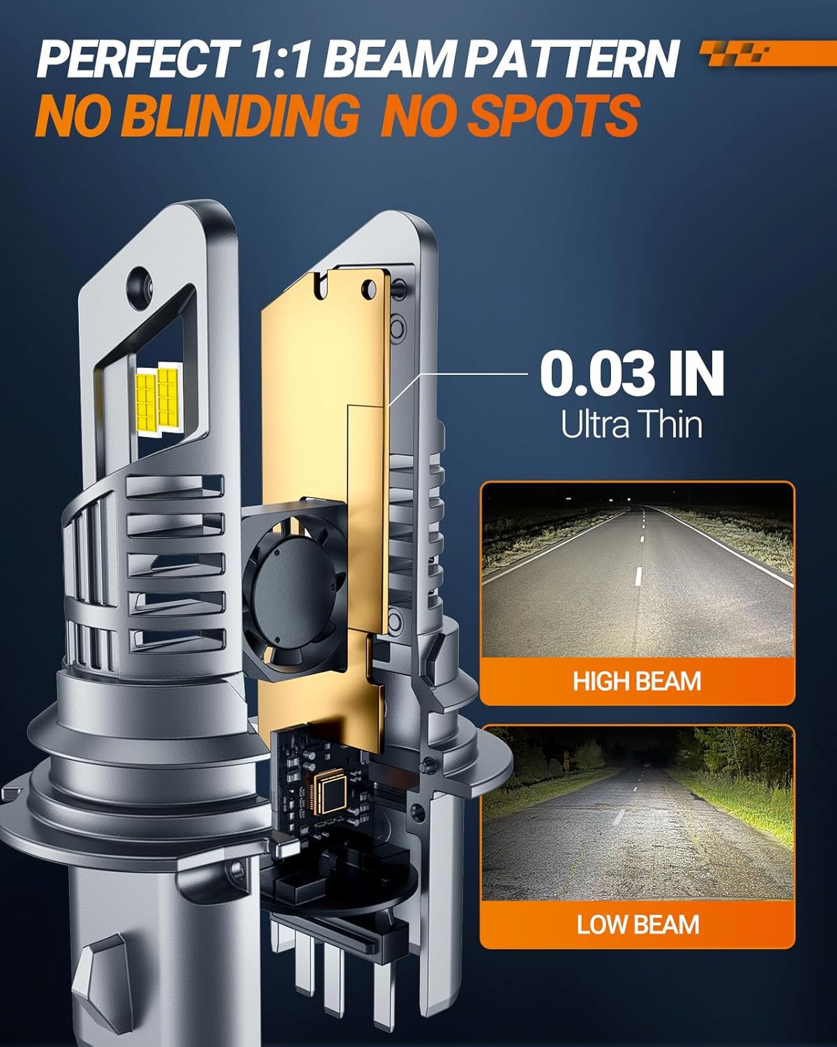 - 【Pefect 1:1 Lighting】The 0.03-inch ultra-thin copper substrate addresses issues like flickering and dimming. The focused lighting minimizes disturbance to oncoming traffic, enhancing safety on the road