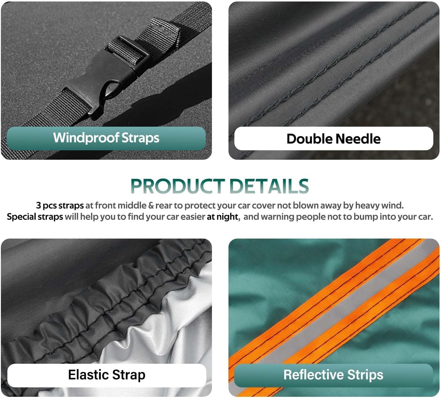 - ăHIGH-QUALITY MATERIALă:Molebt car cover is made of high density polyester, More wear-resistant and tear-resistant. 1800mm water pressure keeps the cover 100% waterproof. Light weight is easy to put on and take off.