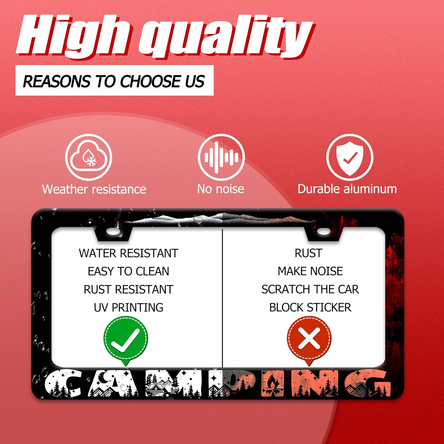 Camping License Plate Frame Mountains License Plate Holder Forest for Car Decorative Parts Stainless Stee License Plate for Standard Us Canada Funny License Plate Frames 12x6 Inch