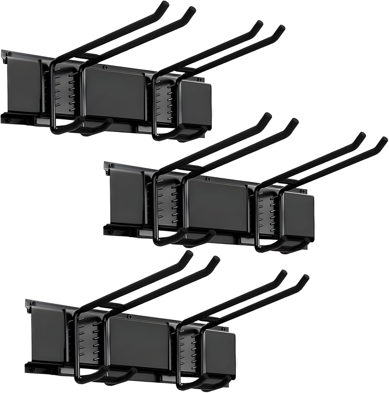 Heavy Duty Garage Organizer Tool Organizer Wall Mount, Iron Metal Hooks Set 6 Pcs, Black Adjustable Dual Hooks, Ideal for Saving Space, Supports 16 in Stud Spacing