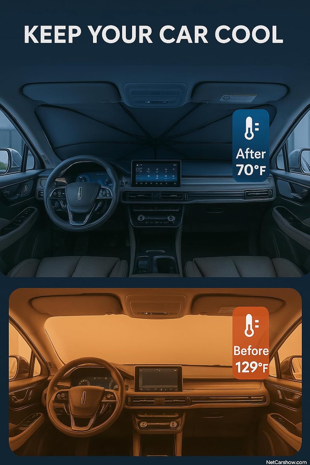 Proadsy Windshield Sun Shade Umbrella for Lincoln Corsair 2020-2025 2026 Foldable Car Umbrella Sunshade with Soft TPU Handle Spring Structure Crystal Cooling Material Protect Car from Rays & Heat