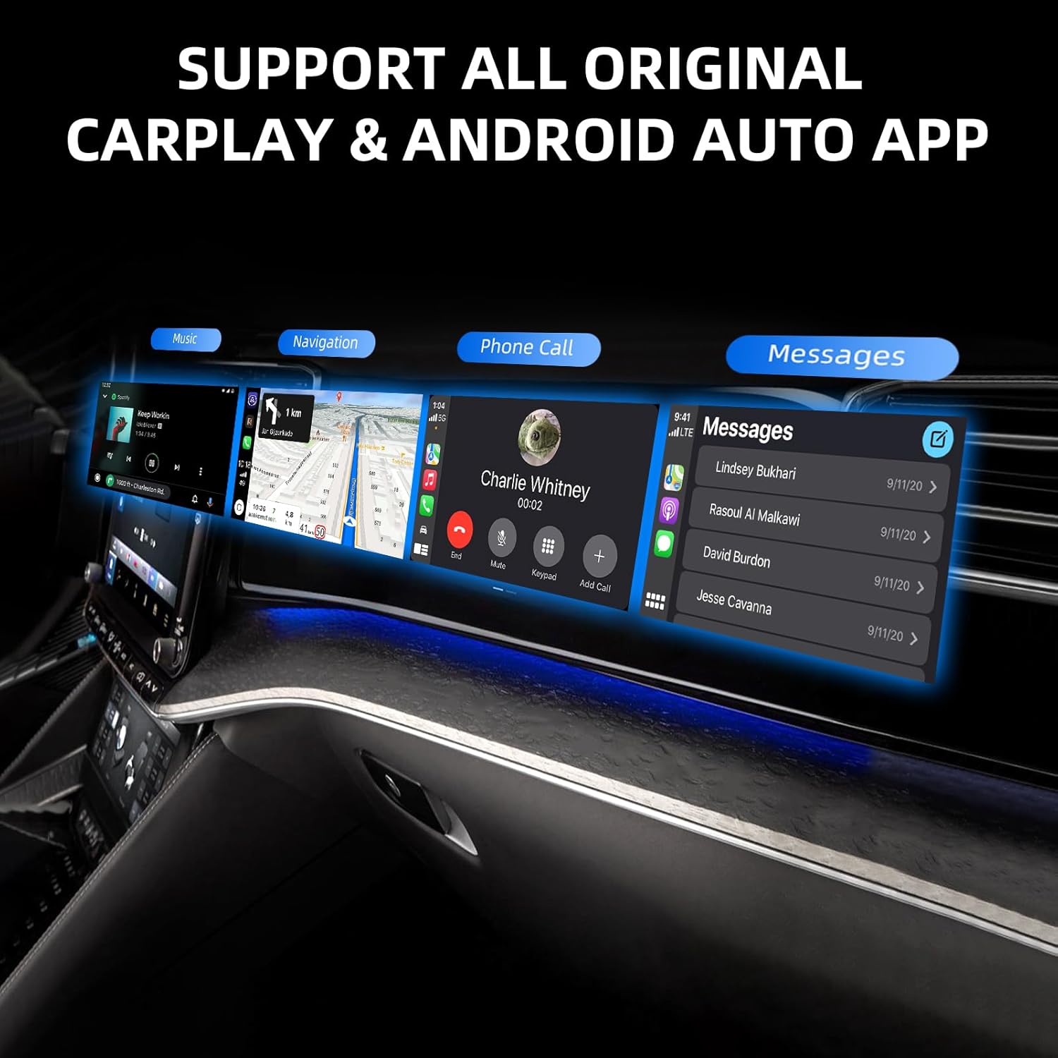 - Wired to Wireless CarPlay/Android Auto: With this mini car play wireless adapter and wireless android auto adapter, you can easily convert your wired CarPlay/Android Auto to wireless, reducing cable clutter. You can continue to use the full CarPlay functionality and keep your original car operations such as navigation, music playback, Siri Assistant and more. We have a more organized, user-friendly car environment with wireless carplay adapter