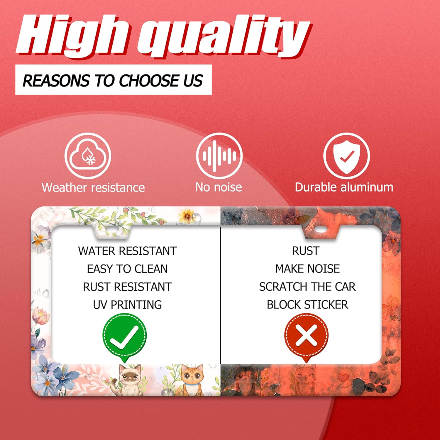Cat License Plate Frame Beautiful Butterflies Flowers License Plate Holder Funny Personalise Car Stainless Stee Decorative Parts for Standard Us Canada Vehicles 12x6 Inch for Women Men