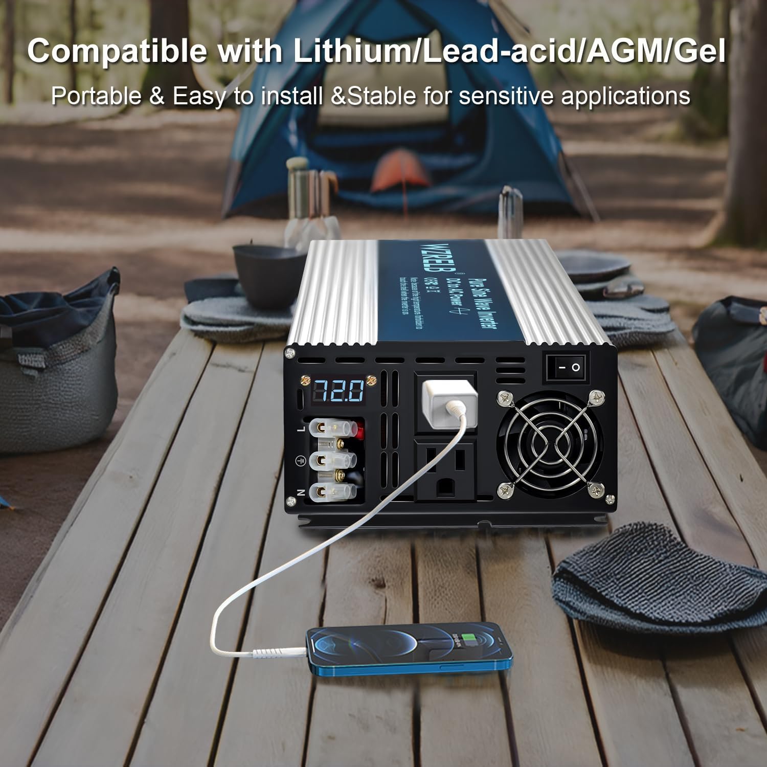 WZRELB 3500W Pure Sine Wave Inverter, Car Power Inverter 72V DC to 110V 120V AC Converter for RV, Truck, Solar, Outdoor with Dual AC Outlets, Hardwire Port, Surge 7000W, LED Display,Off-Grid