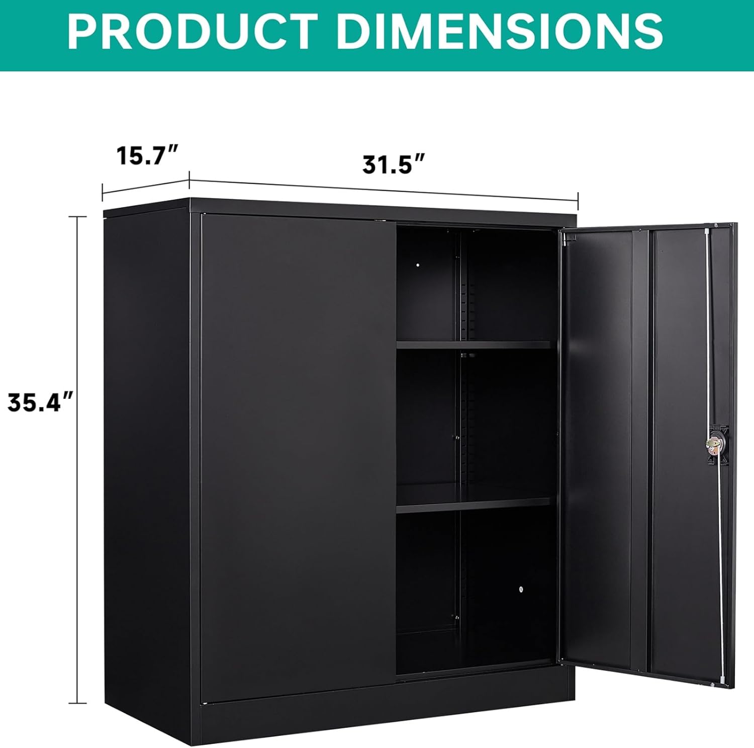 SISESOL Small Metal Storage Cabinet with Doors and Shelves,36 inch Black Locking Garage Cabinet,Lockable Short Steel Cabinets for Home,Office,Shop,Garage