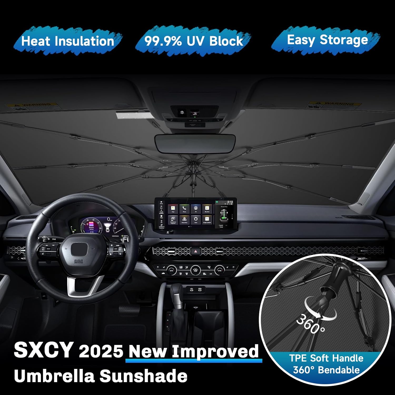 - 2. Innovative Design for Easier Installation: 2024 2025 Defender Umbrella Sun Shade features a 360ยฐ flexible TPE handle, enlarged fabric for adjustable coverage, 10 Spring Ribs for instant open/close. Stores easily like an "umbrella". Effortless for daily use