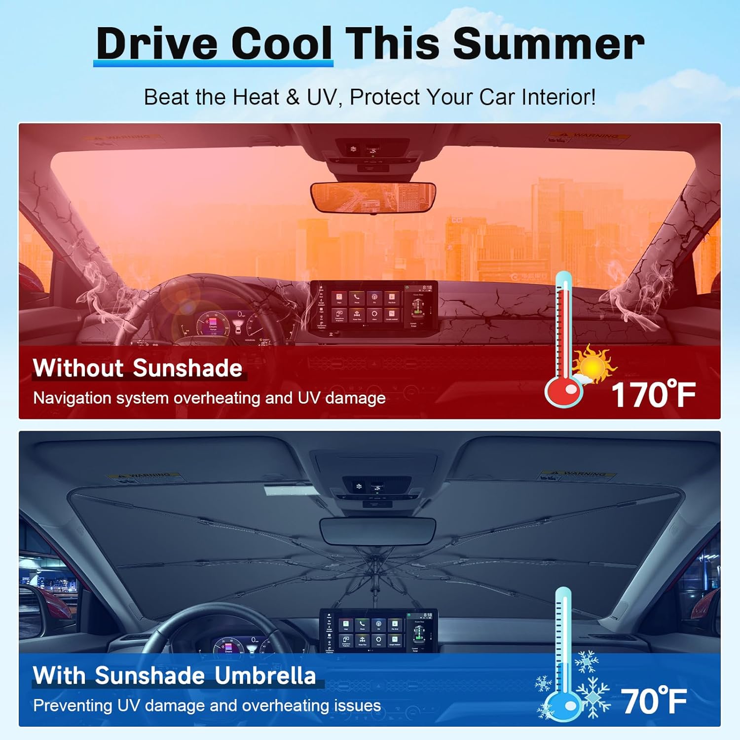 - 3. Enhanced Durability and Stability: Our 2024 2025 Defender Windshield Umbrella uses 10 glass fiber ribs for high strength, heat resistance, and anti-rust performance. Silicone strips withstand 200ยฐC, ensuring durable shade and interior protection