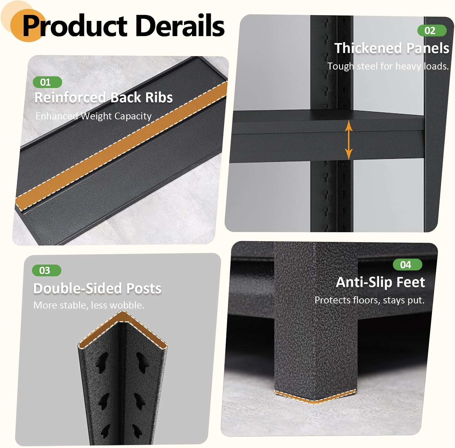 - ăReinforced for Stability â Stronger from the Coreă Thicker shelves, double-sided support posts, and rear stiffening ribs ensure a rock-solid structure. Built to stay stable and safe under heavy loadsâno wobbling, no worries.