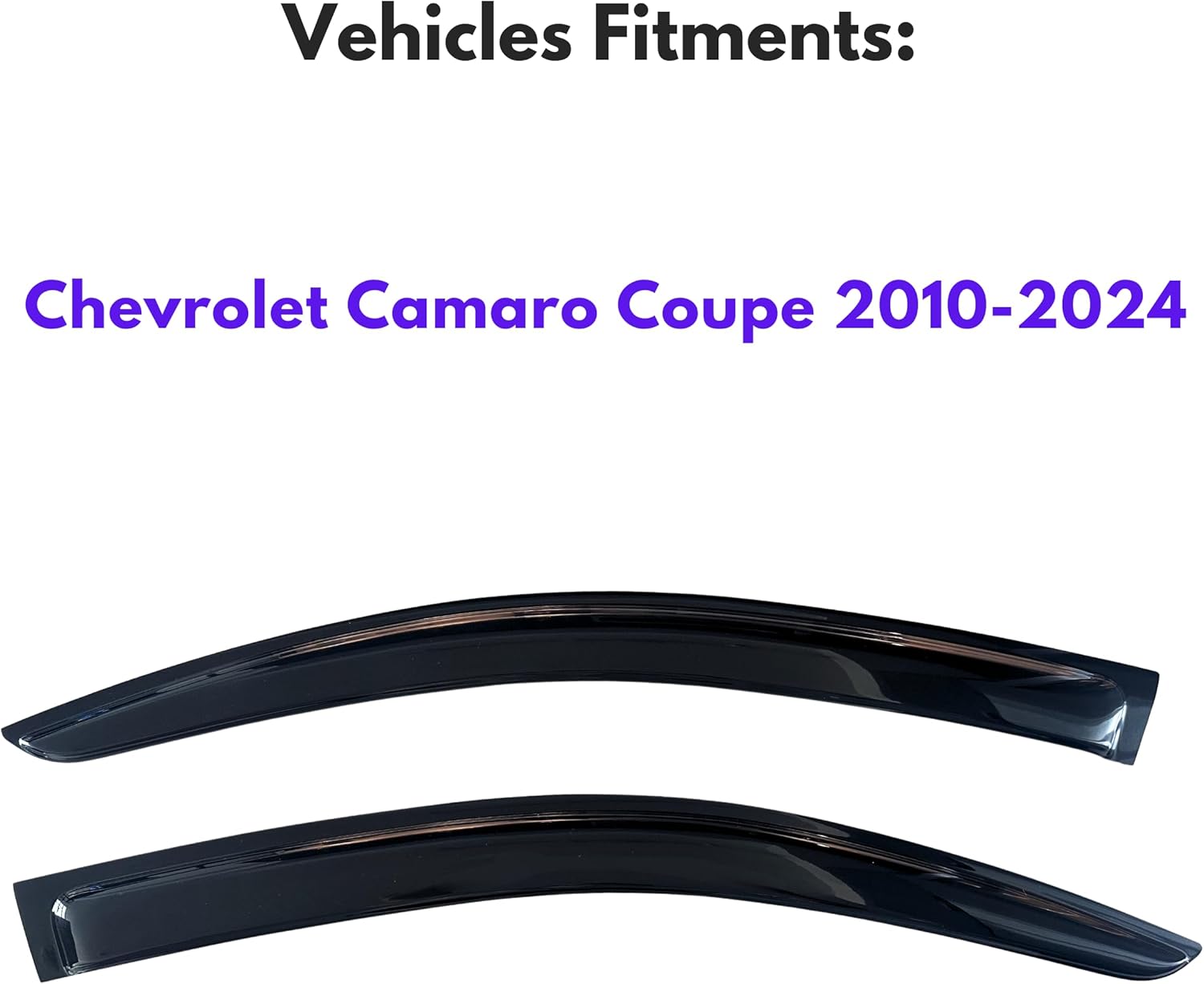 KPY Window Visors Compatible with Chevrolet Camaro Coupe 2010-2024, 2PC Rain Guard Side Vent Deflectors Tape-On Style, 2010 2011 2012 2013 2014 2015 2016 2017 2018 2019 2020 2021 2022 2023 2024