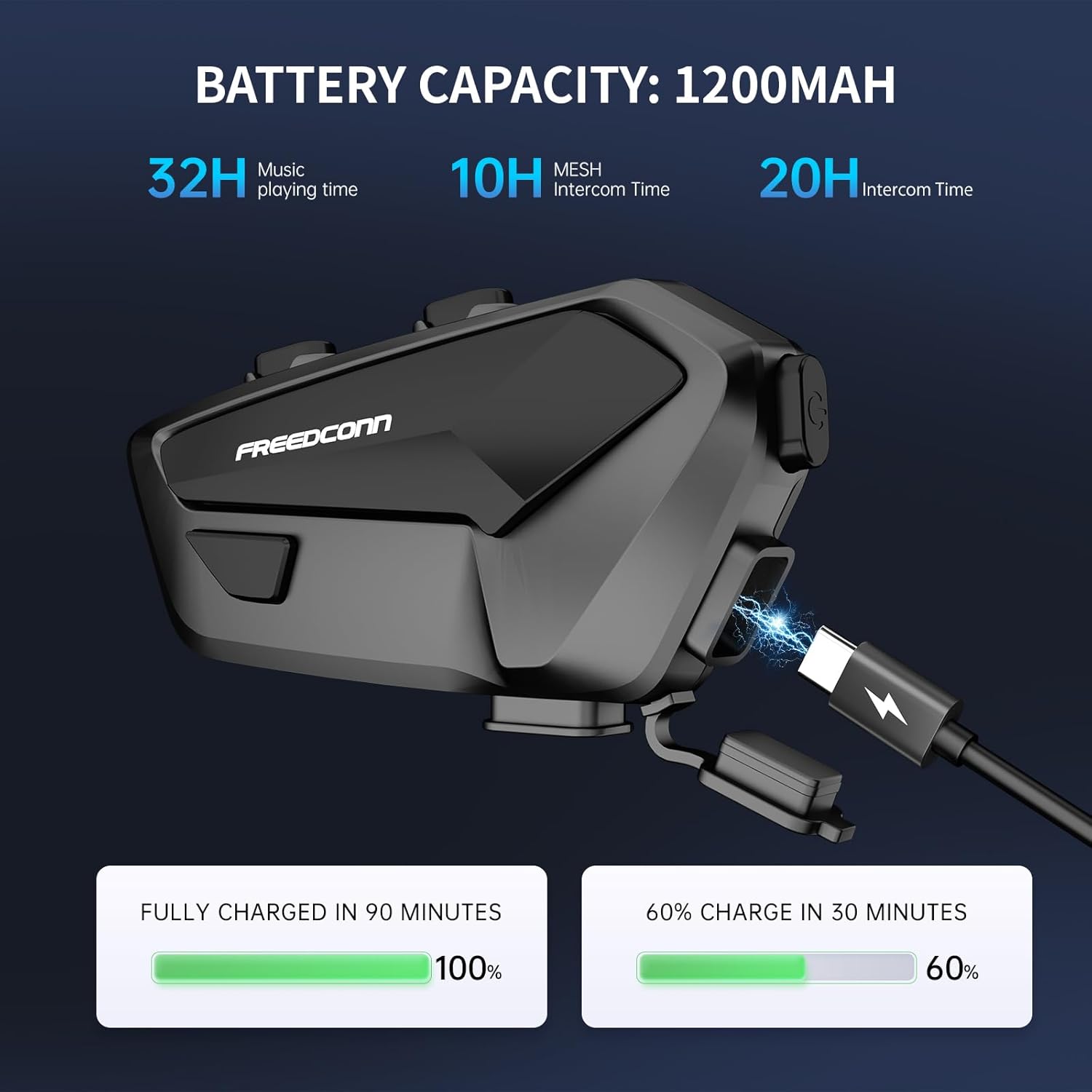 - 【6-Rider Conference Mode】This motorcycle helmet bluetooth headset delivers 1200m-range intercom. Share Spotify playlists between 2 headsets while coordinating with 6 additional riders via group channel