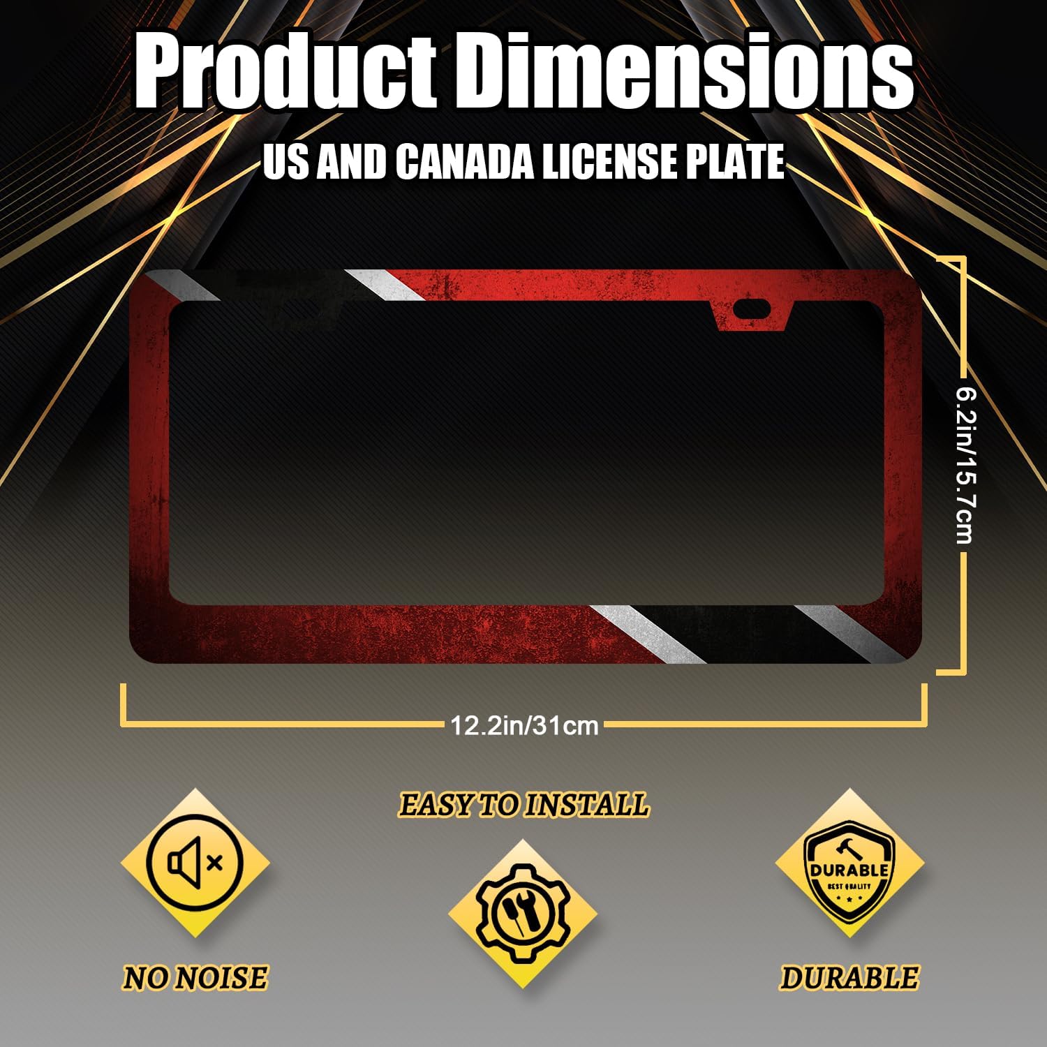 - Size: The size of the license plate frame is 12.3" x 6.3" , it fits all standard size US and Canada vehicle license plates.Fashion design frame fits perfectly on your car license plate.