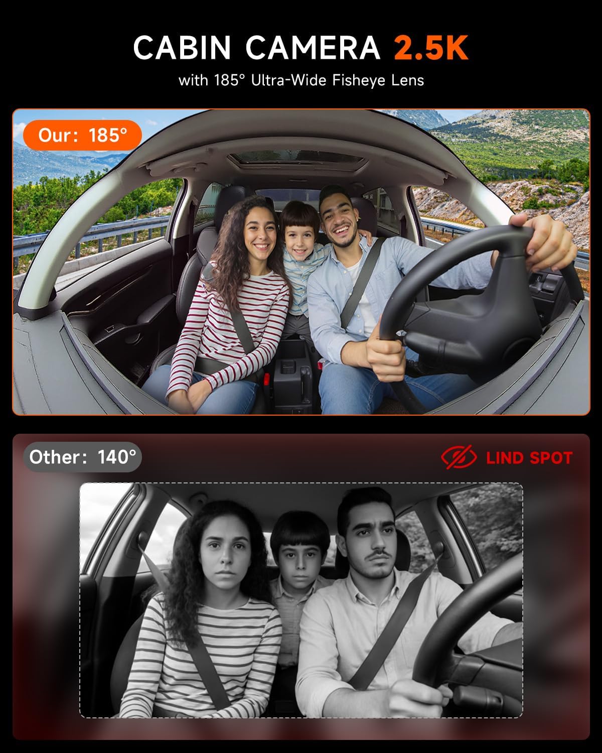 - 【Industry-First 4K + 345° Fisheye Coverage】Our dual dash cam combines a 4K UHD front camera (160°) with a 185° fisheye cabin lens (2.5K), offering 345° coverage without digital stitching. Unlike typical 360° camera for car setups that cause distortion or resolution loss, our optical dual-lens dash cam delivers ultra-clear footage inside and outside the vehicle—no blind spots, no compromises. Ideal for drivers who want clarity and wide coverage from a top-tier dash camera.