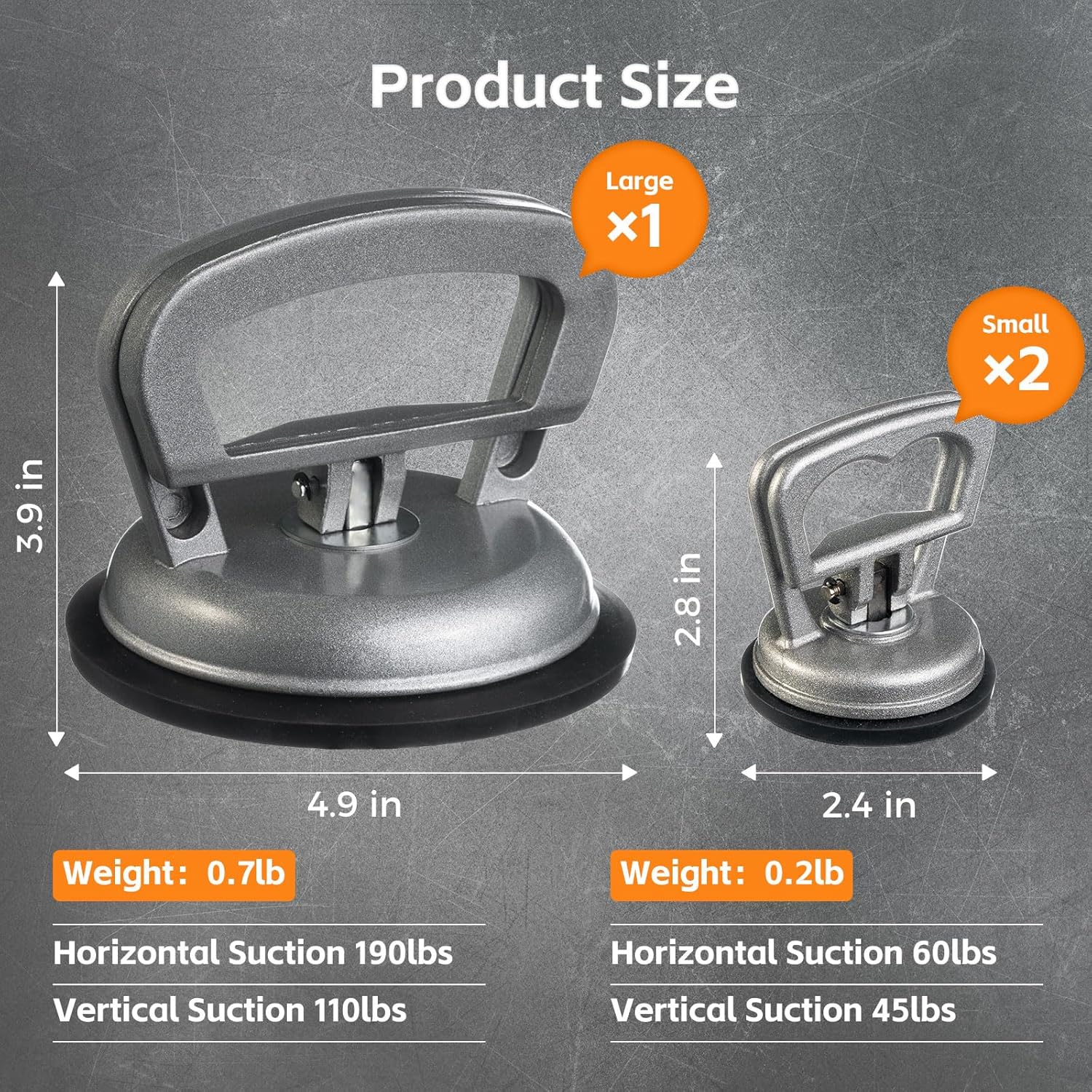 - Versatile Dent Removal Kit: Our dent repair kit comes with one large car dent puller (4.9 inches) and two small car dent removal (2.4 inches). Itโs a multifunctional suction cup that can lift up glass, tiles, steel, furniture and other smooth objects and it also can be used to remove the screen or used as a phone holder to watch videos.