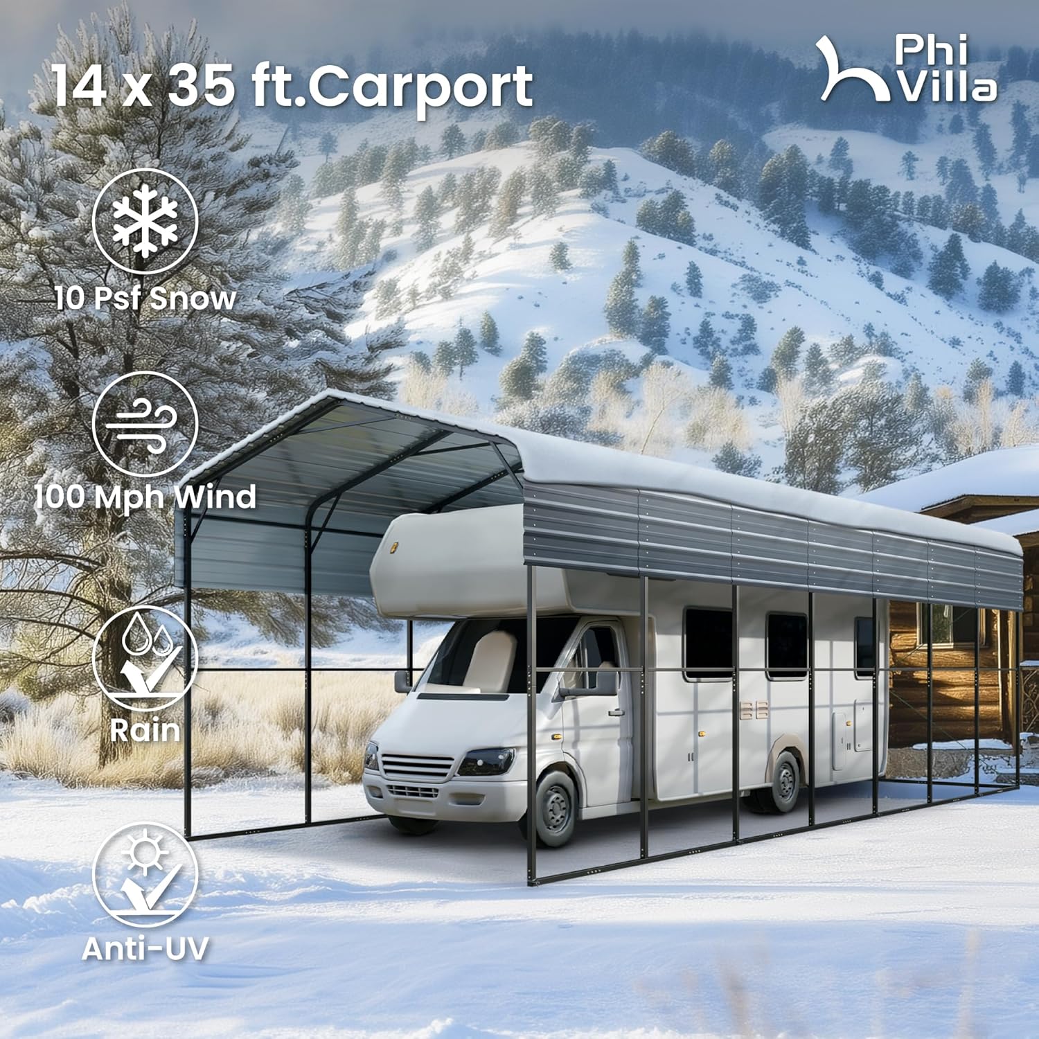 PHI VILLA 35 x 14 ft Heavy Duty Metal Carport with Galvanized Steel Roof for RVs, Cars, Boats, and Tractors