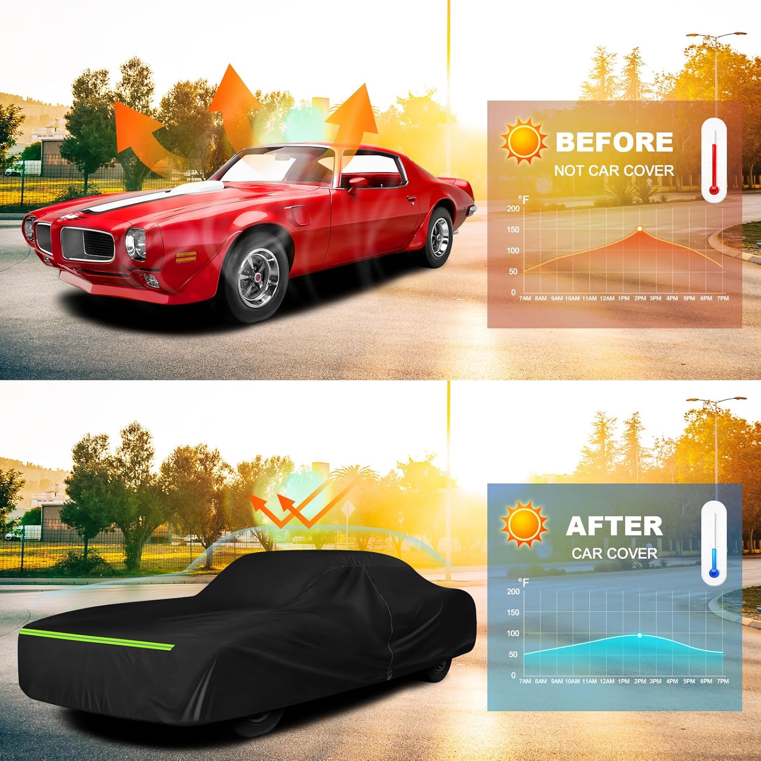 - ăMultilayer ConstructionăThe cover for pontiac Firebird is made of multi-layer waterproof fabric with excellent waterproof performance, and the multi-layer material is thicker and more durable than other similar products.*Includes storage bag and installation instructions. If you encounter any problem, please contact us first, we will try our best in solving it for you.