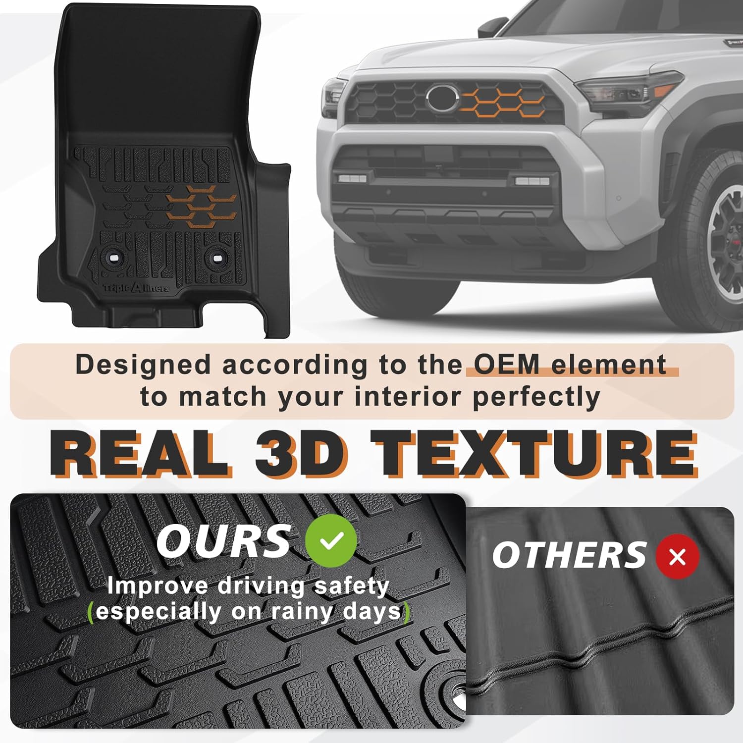 TripleAliners Floor Mats All Weather Liners Compatible with Toyota 2025 4Runner Accessories Custom Fit TPE Heavy-Duty 1st & 2nd & 3rd Row Waterproof Anti-Slip Floor Liners (7 Seats ONLY)