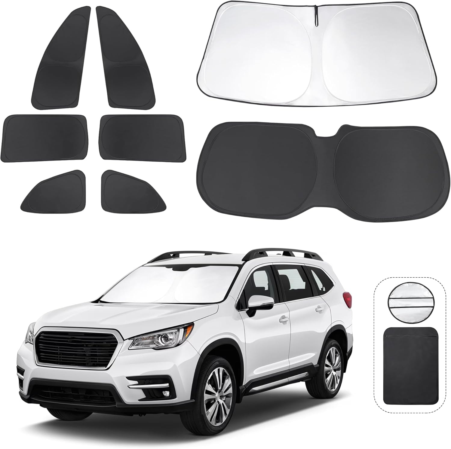 - Customized Design:The sun shade custom fit for Subaru Ascent 2019-2024 2025.Our window shade is according to the car size design,perfectly fit your car and does not need to trim.windshield sun shade solve the problem of light leakage and incompatibility of the old umbrellas.The sunshade designed for Subaru Ascent.