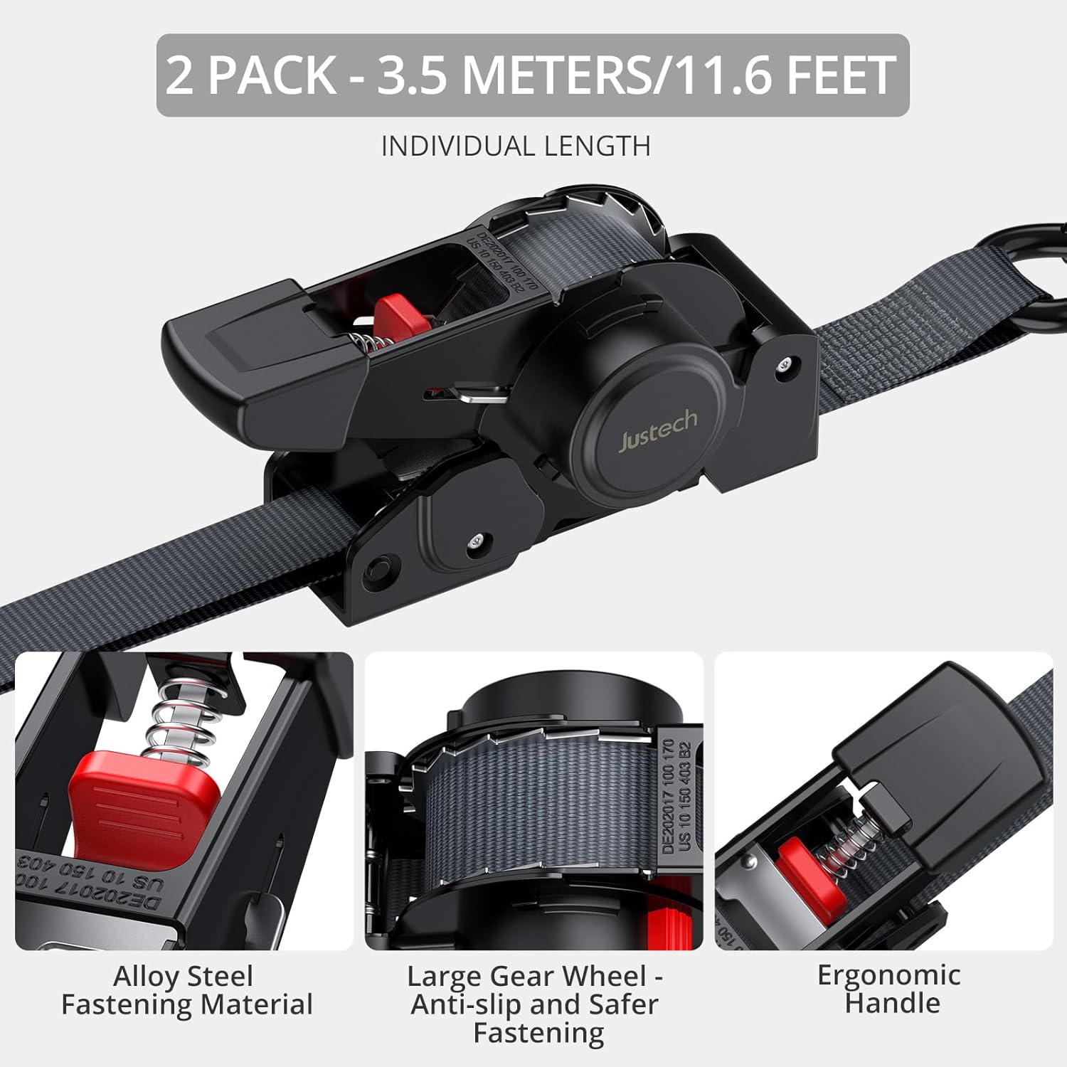 - 【Auto Retractable Design】The retractable tie down straps separates the ratcheting and retraction functions, ensuring stability and convenience throughout transportation. In unlocked mode, just press the red side button for one-handed automatic strap retraction, no more manual winding. In locked mode, you can turn the handle 2-3 times to tighten and lock at the desired lengthjust without accidental retraction