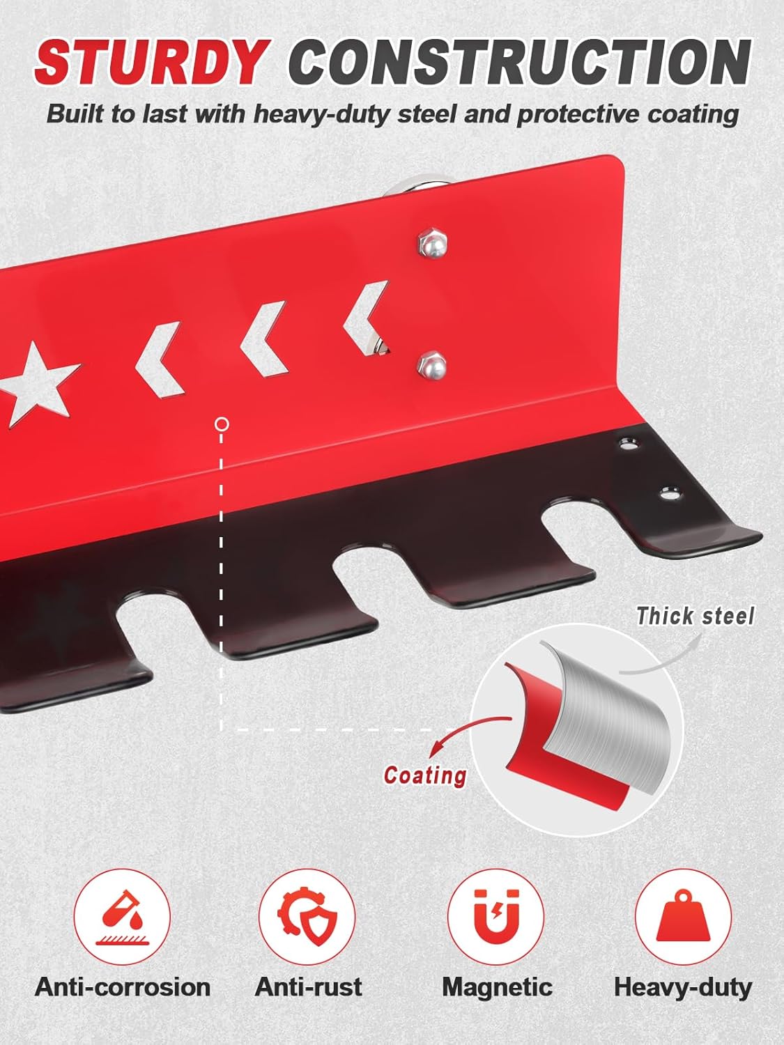 - Flexible Mounting Methods: Equipped with four high-strength magnets (each rated for 99 lbs of pull), the rack can be attached to any metal surface in seconds. Pre-drilled holes and included bolts also allow for permanent wall installation to suit your workspace needs
