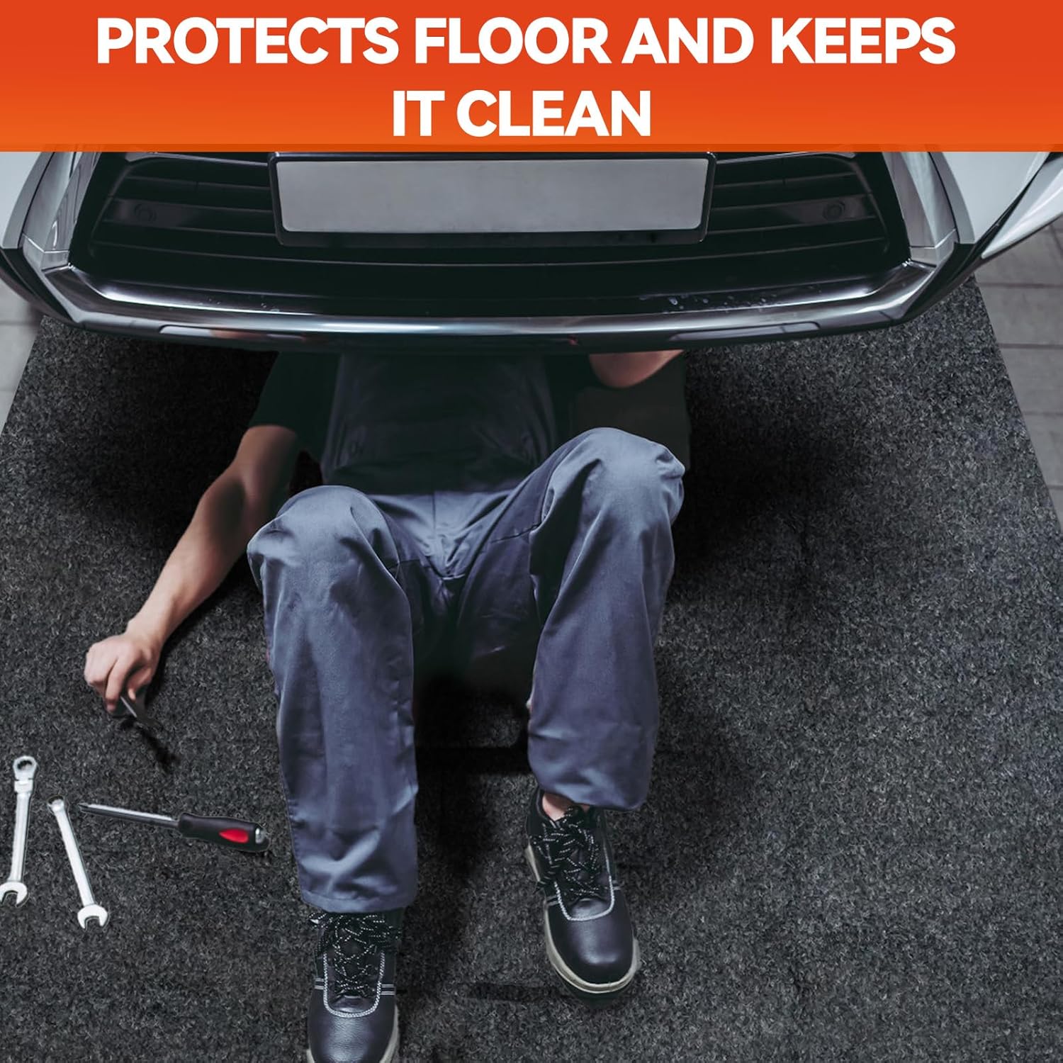 - MULTIPURPOSE: Our oil spill mat is designed specially for vehicle maintenance, oil changes, and repair. Effectively protects your garage floor, driveway, and parking spaces against oil spills and stains. Garage floor mat can also be used for car trunks, golf carts, motorcycles, and under gardening tools, lawn mowers