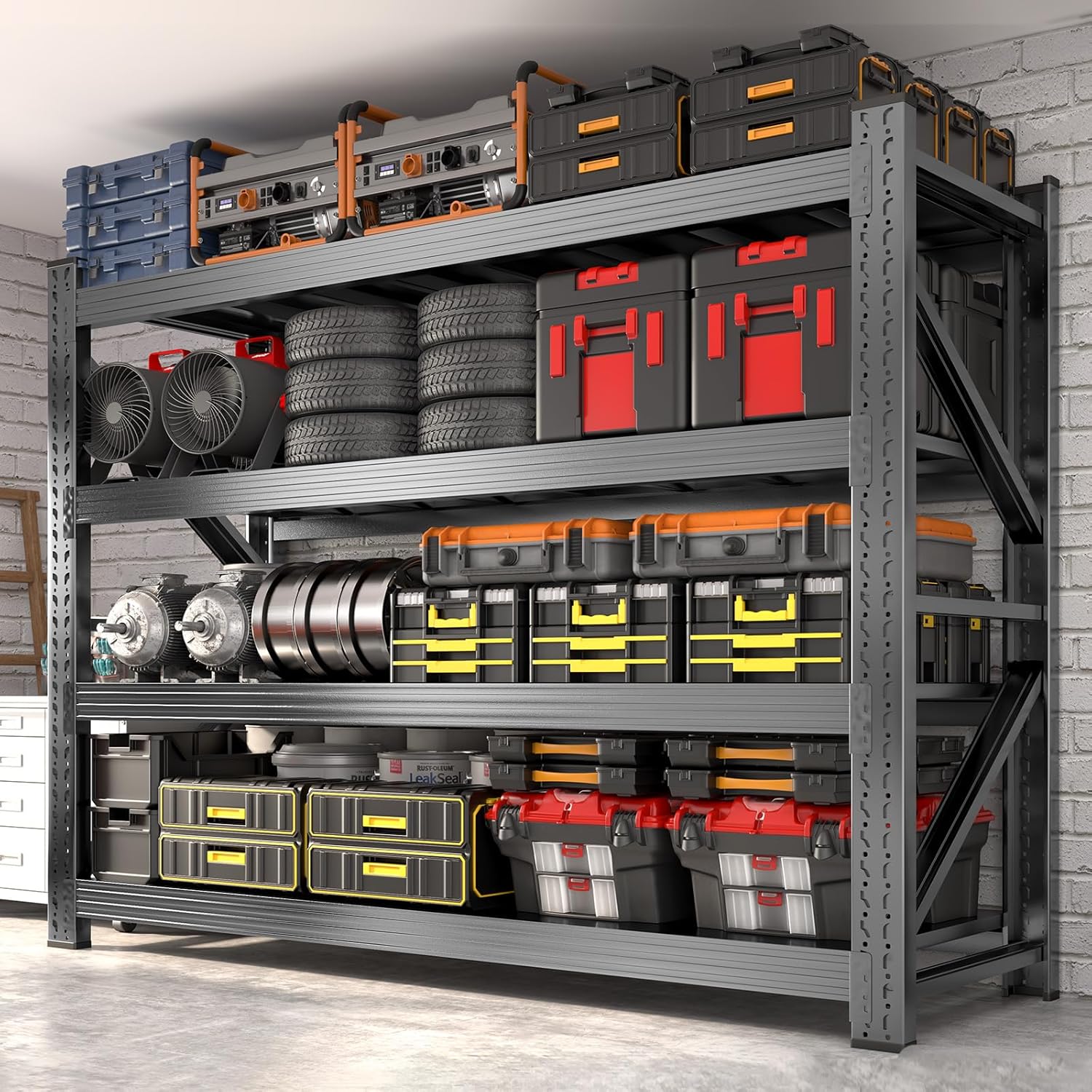 - ăHeavy-duty Shelves with Big CapacityăThese wire garage shelving are made with highest quality industrial grade metal, thickened columns and beams ensure maximum stability in these garage shelving, the 5-tier heavy-duty wire shelving rack with up to 6000 pounds of weight capacity is what you really need!