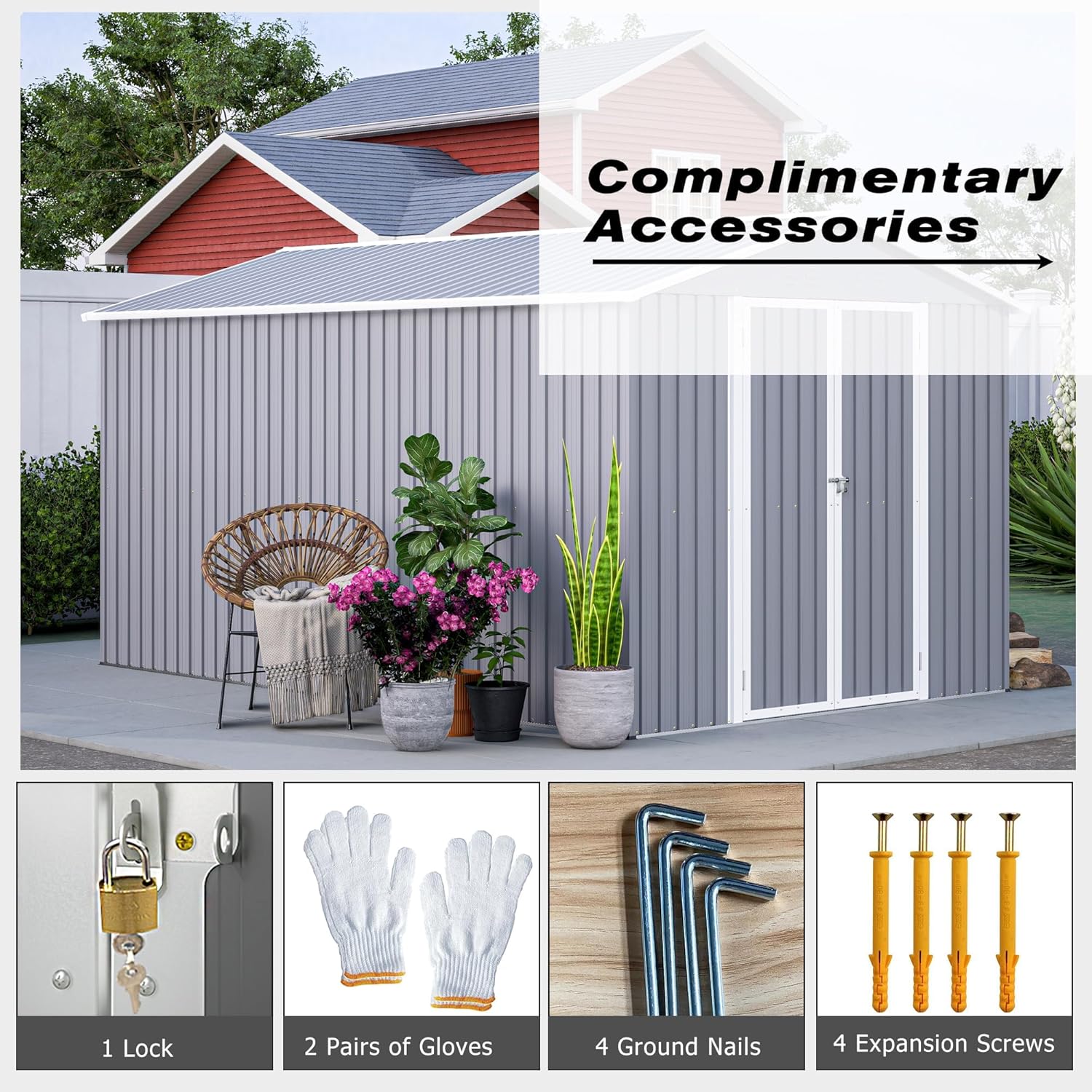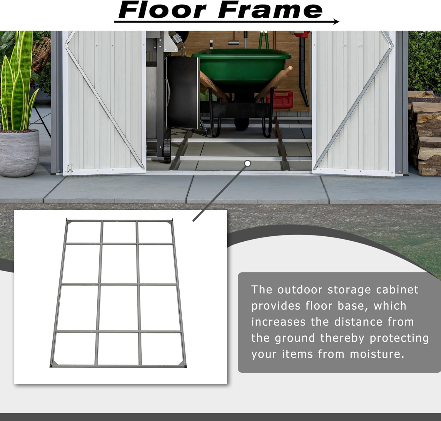 8×12 Ft Outdoor Storage Shed with Double Doors, Metal Shed with Frame Floor and Lockable Doors for Patio, Garden and Backyard