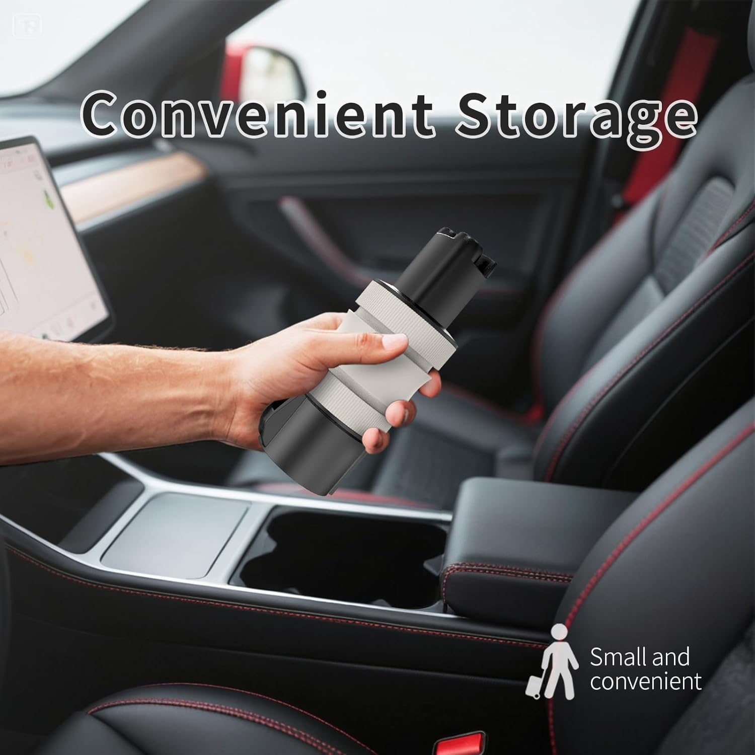 - 【Small and Portable】Adopts a double rotation locking structure to ensure zero shaking connection of the charging port. Its intelligent compatible design perfectly adapts to home J1772 charging piles, commercial charging stations (shopping malls/supermarkets/parking lots) and outdoor scenes (self-driving travel/field adventures), realizing seamless connection between Tesla and various charging facilities.