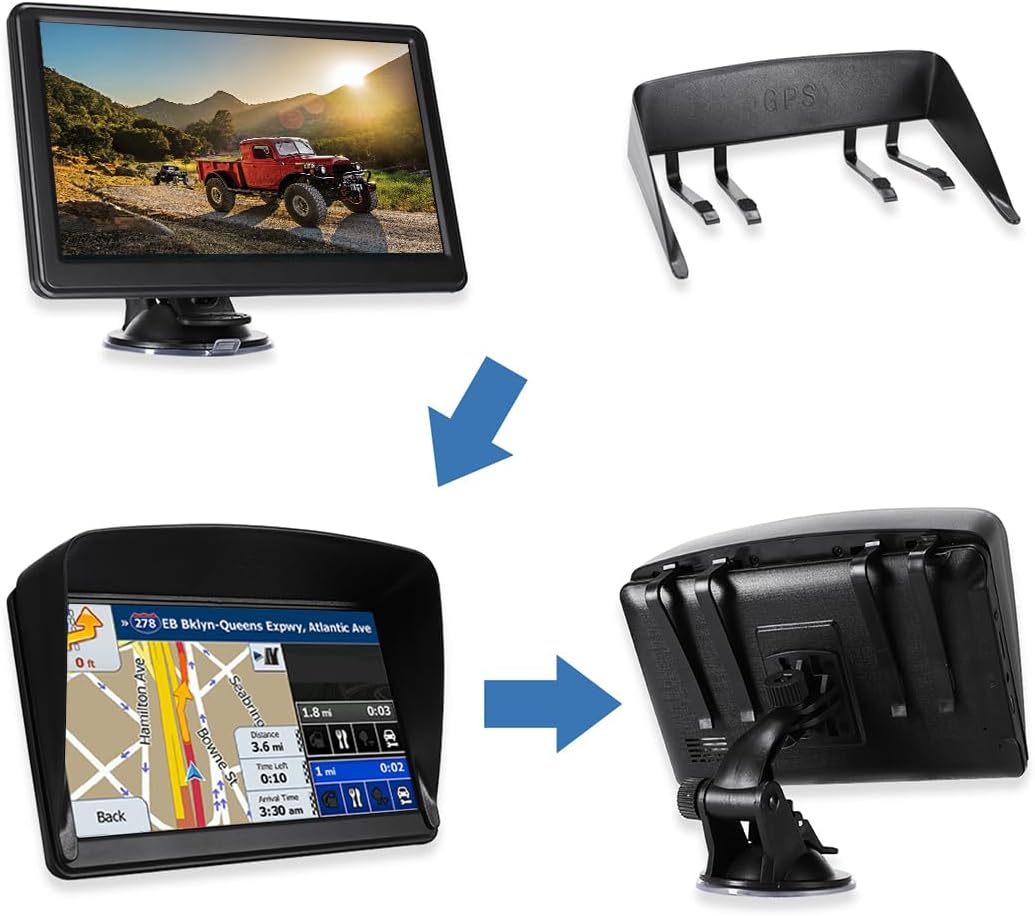 - 🚗【SUPPORTS 7 VEHICLE MODES】 - The GPS navigation is suitable for car, truck, bus, taxi, bicycle, emergency and pedestrian. When driving the vehicle, you will benefit from the information of length, width, height, weight and other data. With a suction cup and back clip, you are able to easily fix the truck GPS to the windshield or dashboard. It makes driving more comfortable.