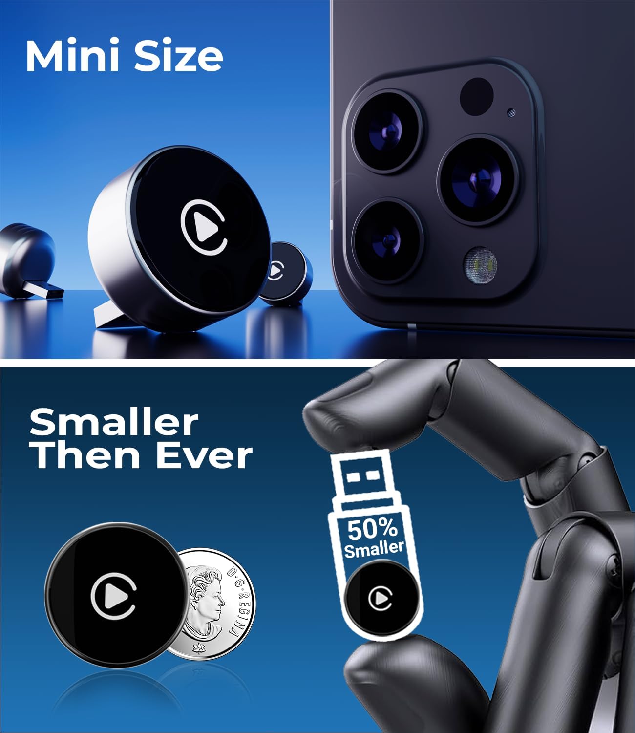 - π Revolutionary Compact Mini Design, 50% Smaller β The ultra-compact and sleek Carlizem wireless CarPlay adapter fits almost flush in your carβs USB port, blending seamlessly into your vehicleβs interior for a clean, minimalist look without clutter. With our upgraded, nearly invisible adapter, effortlessly add wireless functionality to your car's original Apple CarPlay and enjoy wireless access to CarPlay features like music, maps, calls, voice assistance and more.