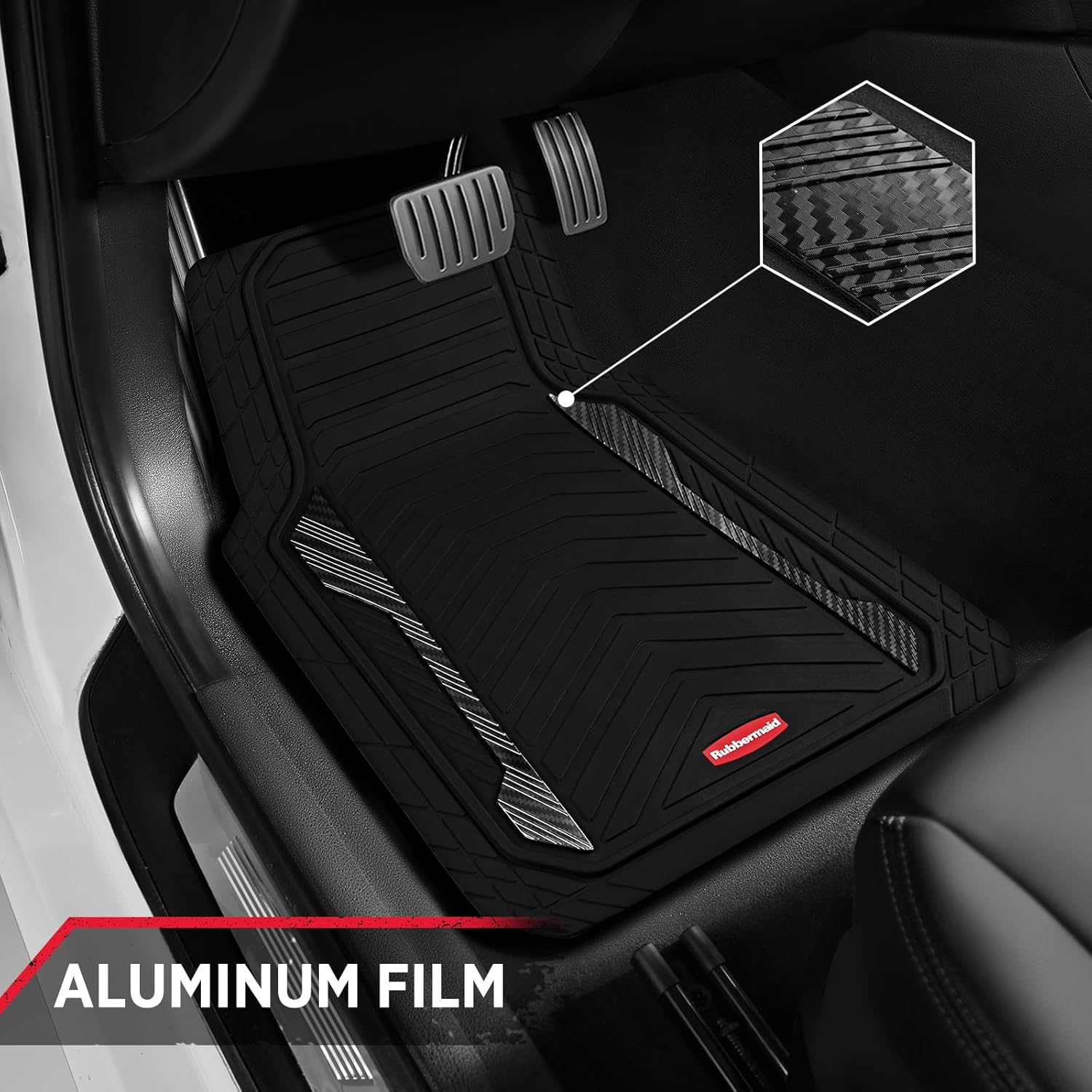 - Ready for the Road, Styled for Impact: Take your vehicle’s interior to the next level with rugged protection and a bold custom look. Featuring brushed black aluminum accents embedded in durable rubber mats, these floor liners combine strength with standout style.