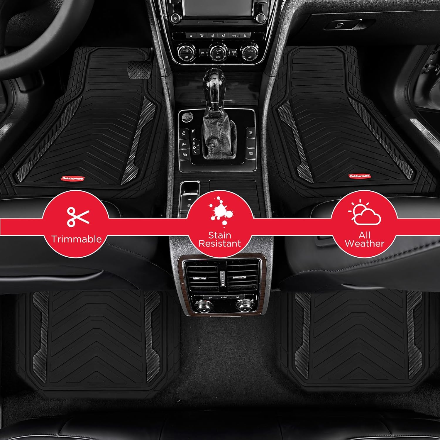 Rubbermaid Car Floor Mat, Heavy Duty All-Weather Car Mats Full Set with Dual-Tone Black Aluminum Inserts – Universal Fit, Anti-Slip Backing, Trim-to-Fit for Most SUV, Sedan, Van