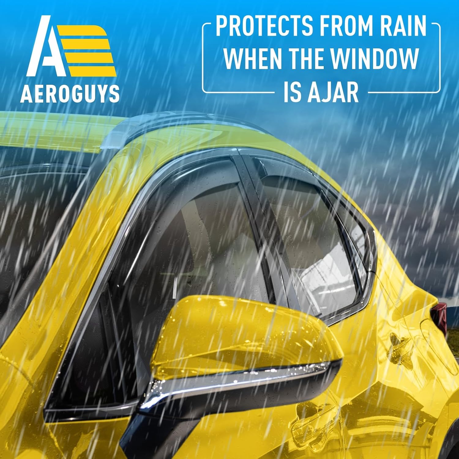 - No Tools Needed, Quick and Easy Assembly β These rain guards are very easy to fit. IN-CHANNEL INSTALLATION provides perfect fit for your car. Just slip it onto your carβs window and your job is done within minutes. There is no drilling or no tools required. Be sure that AEROGUYS window deflectors are water resistant, sun protective and will not bend, break or crack regardless of the weather conditions.