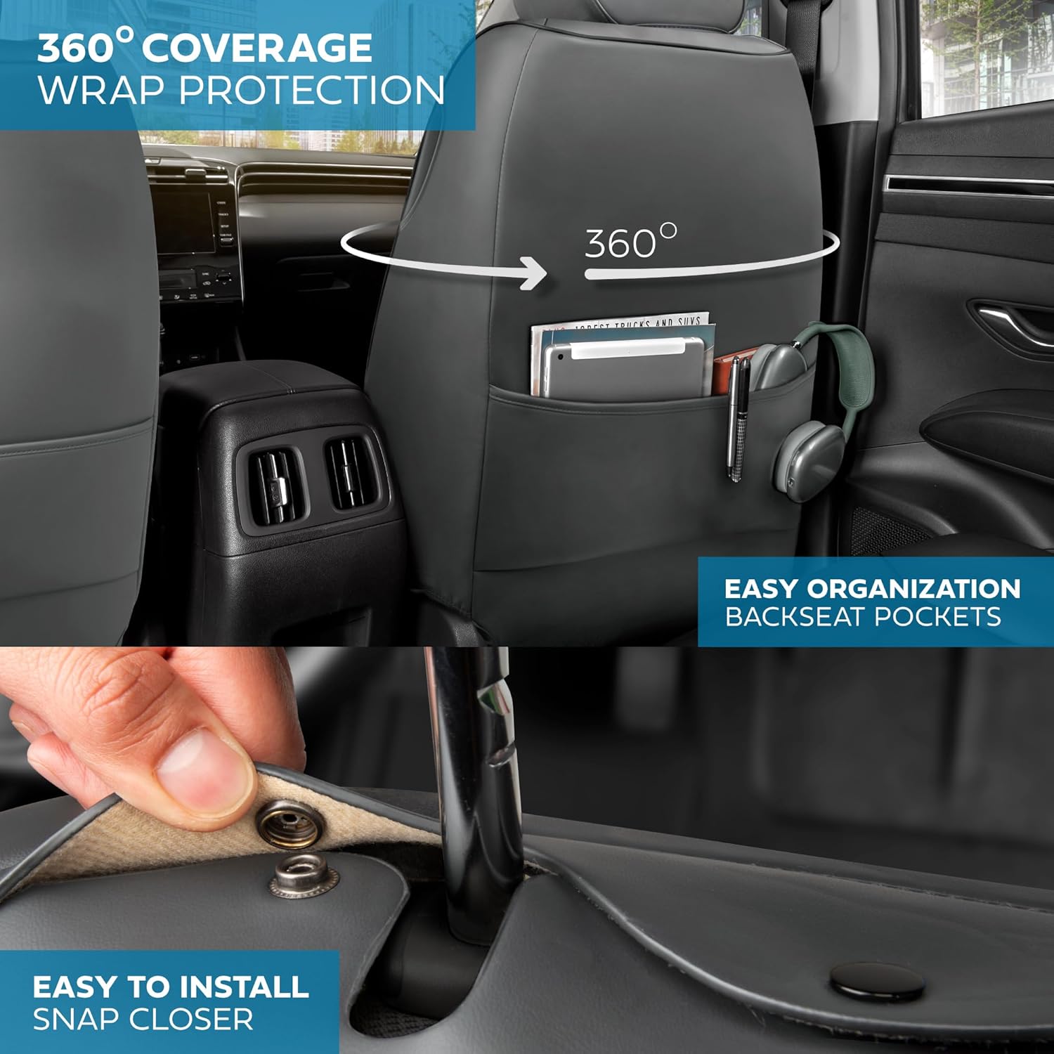 - ULTIMATE PROTECTION: MotorBox faux leather car seat covers offer ultimate protection against spills, stains, dirt, and wear. Designed to shield your seats from daily damage, these covers help maintain the original condition of your car’s interior, ensuring durability and extending the lifespan of your vehicle’s seats. Not just for cars, these are leather seat covers for trucks & SUVs too!