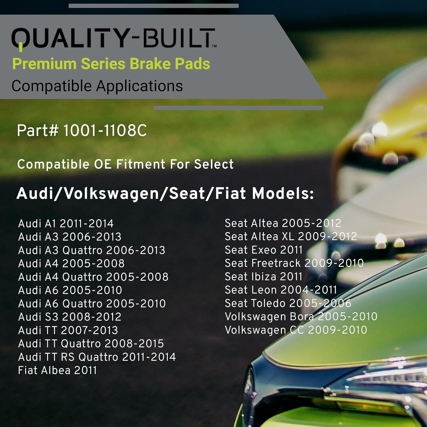 Premium Ceramic Rear Brake Pads (1001-1108C) Compatible with 2004-2018 Audi/Fiat/Volkswagen (A3/A4/A6/GLI/Golf/Golf R/GTI/Jetta/Passat/S3/Tiguan/TT Quattro/TT RS Quattro & More)