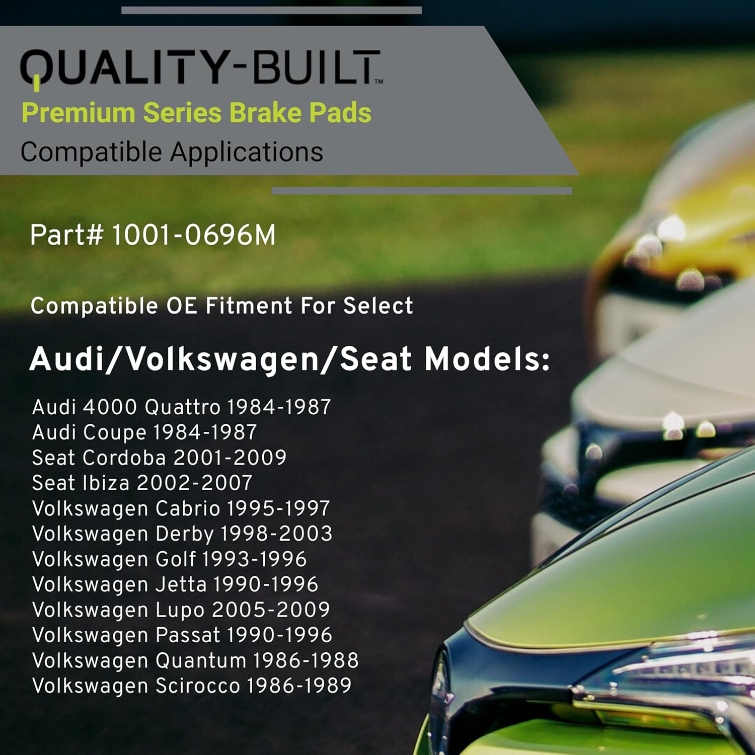 Premium Semi-Metallic Front Brake Pads (1001-0696M) Compatible with 1984-2009 Audi/Volkswagen (4000 Quattro/Cabrio/Cordoba/Coupe/Derby/Golf/Ibiza/Jetta/Passat & More)